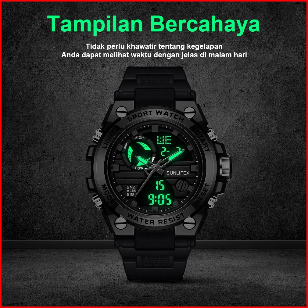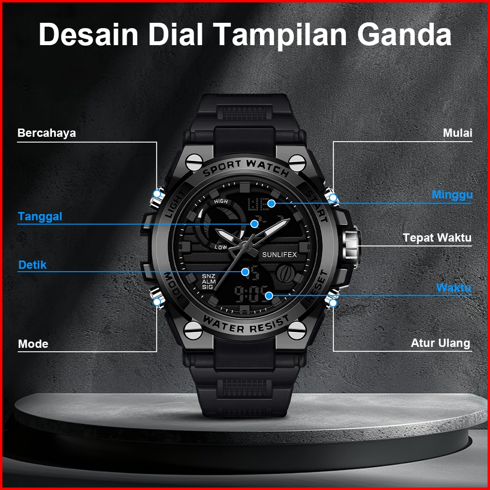 Sunlifex Jam Tangan Pria Sport Anti Air Digital Original Multifungsi D006 Tali Silikon 3d Desain