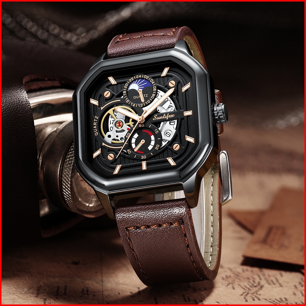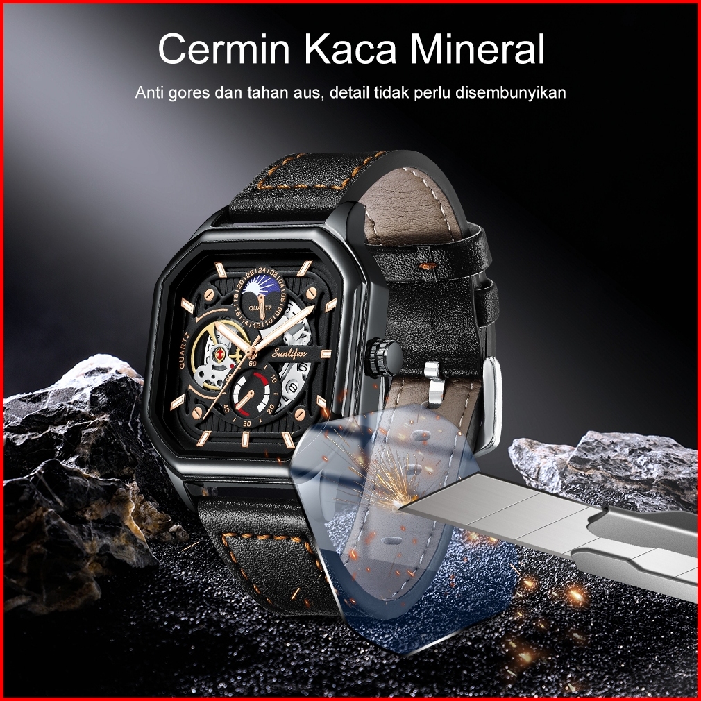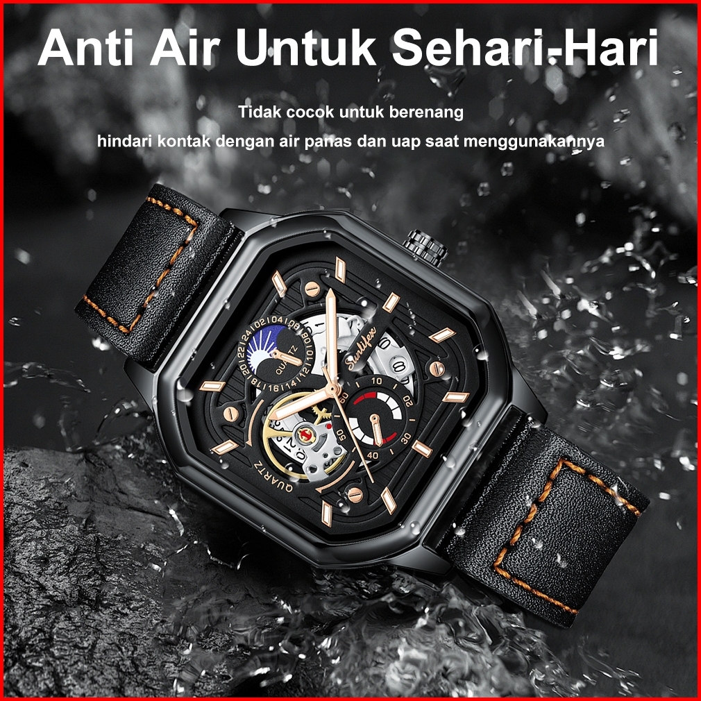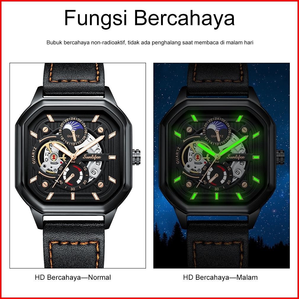 Sunlifex Jam Tangan Pria Anti Air Original Mode Kalender Luminous Tali Kulit 9110 Jam Tangan Cowok