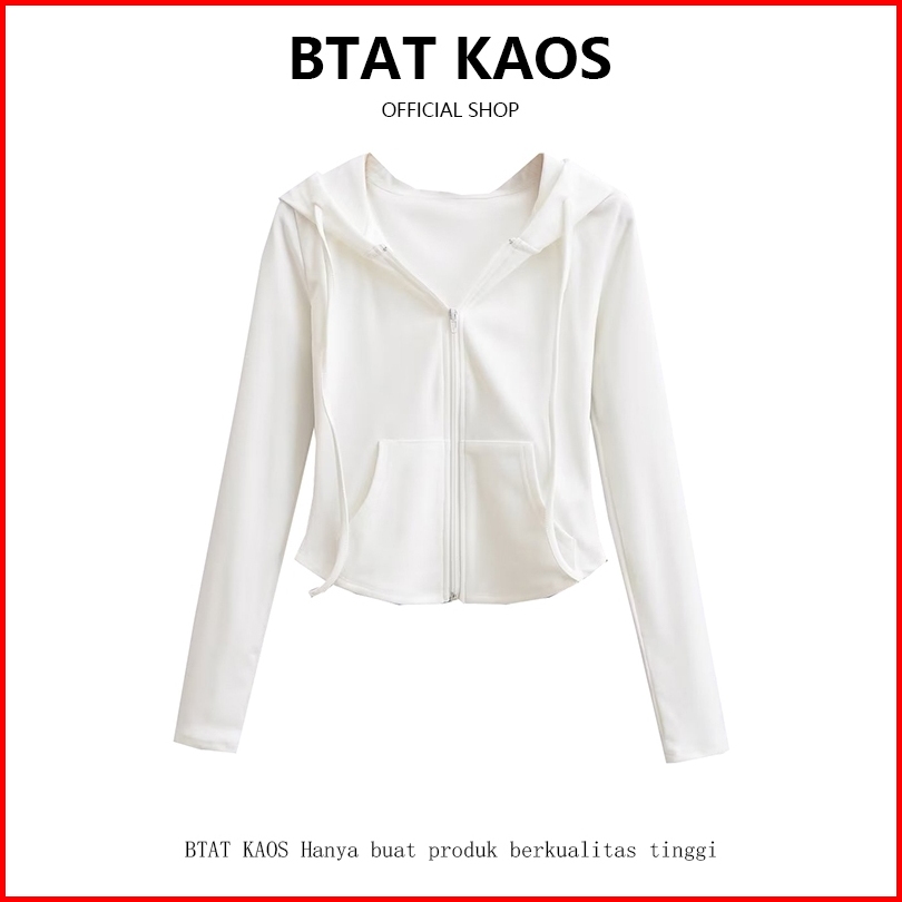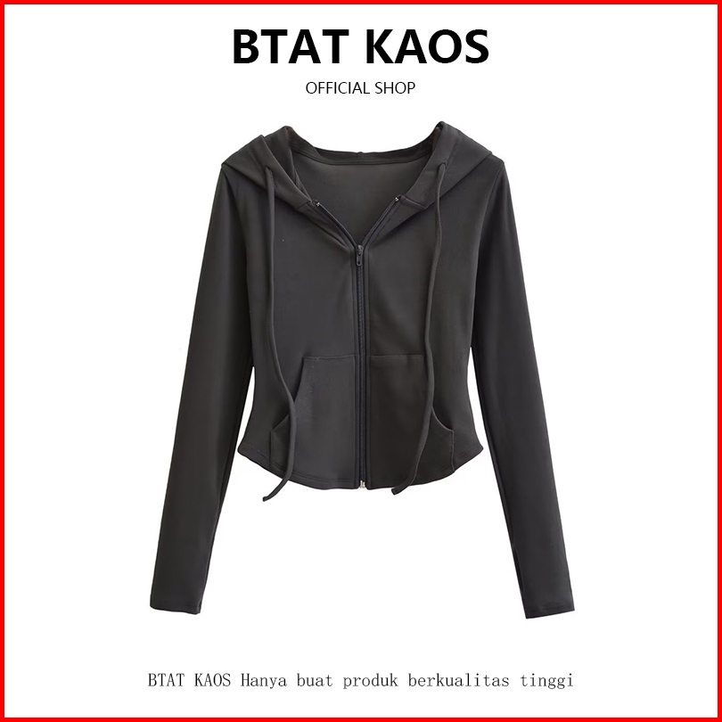 Btat Premium Wanita Polos Crop Zipper Hoodie Jacket Cokelat Wanita Korean Style