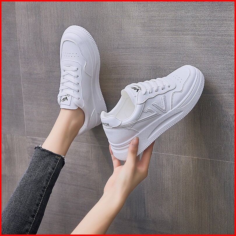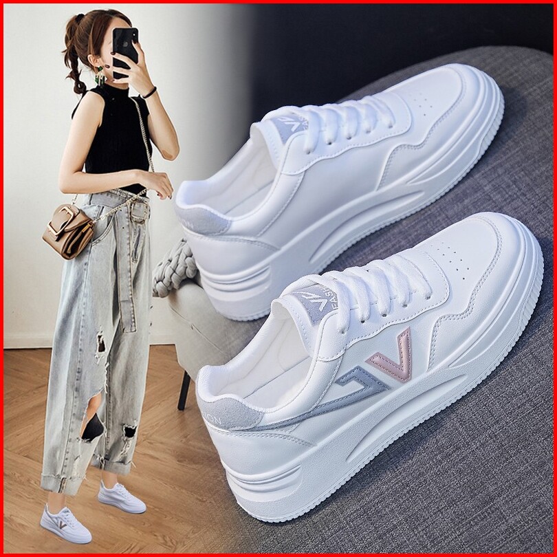 Sepatu Sneakers Wanita Warna Putih Gaya Casual Korea Untuk