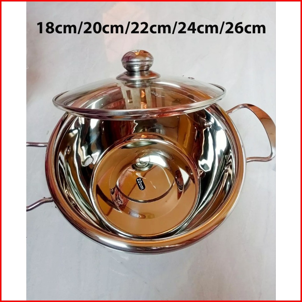 Panci Sup Soup Pot 18cm 20cm 22cm 24cm 26cm Stainless Steel Tutup Kaca Murah Gagang Stainless