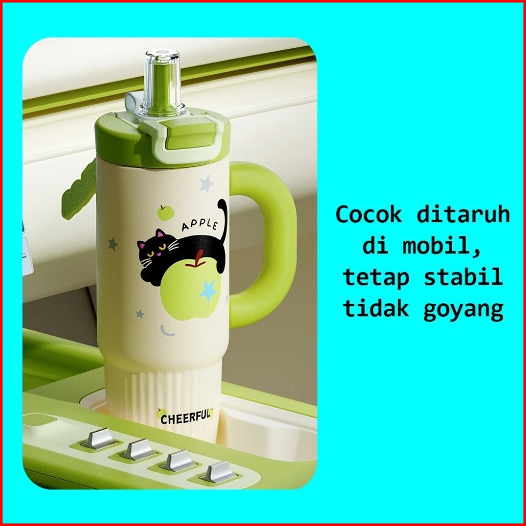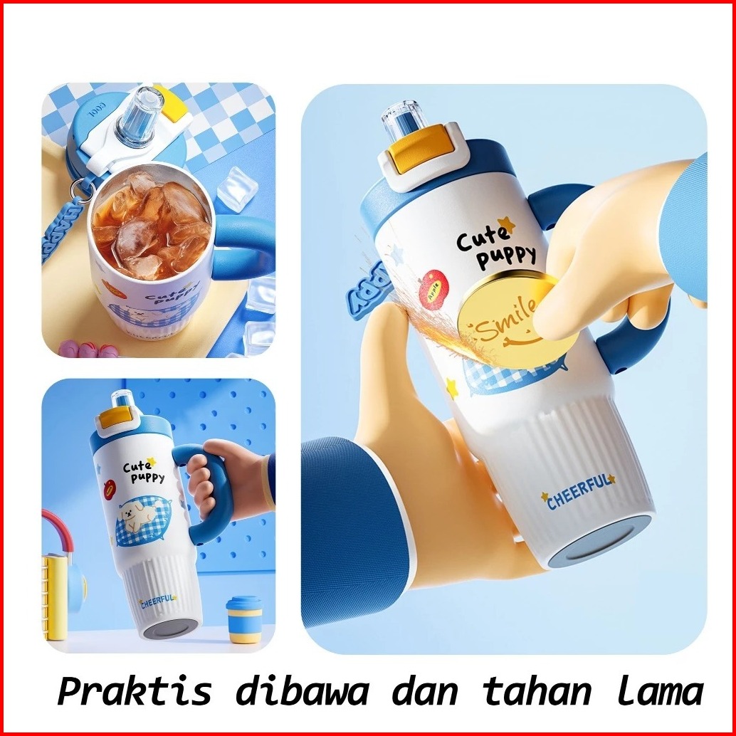 Tumbler Botol Minum 800ml Stainless Sus 316 Portable Jumbo Dengan Gagang Kakrakter Lucu T 2228