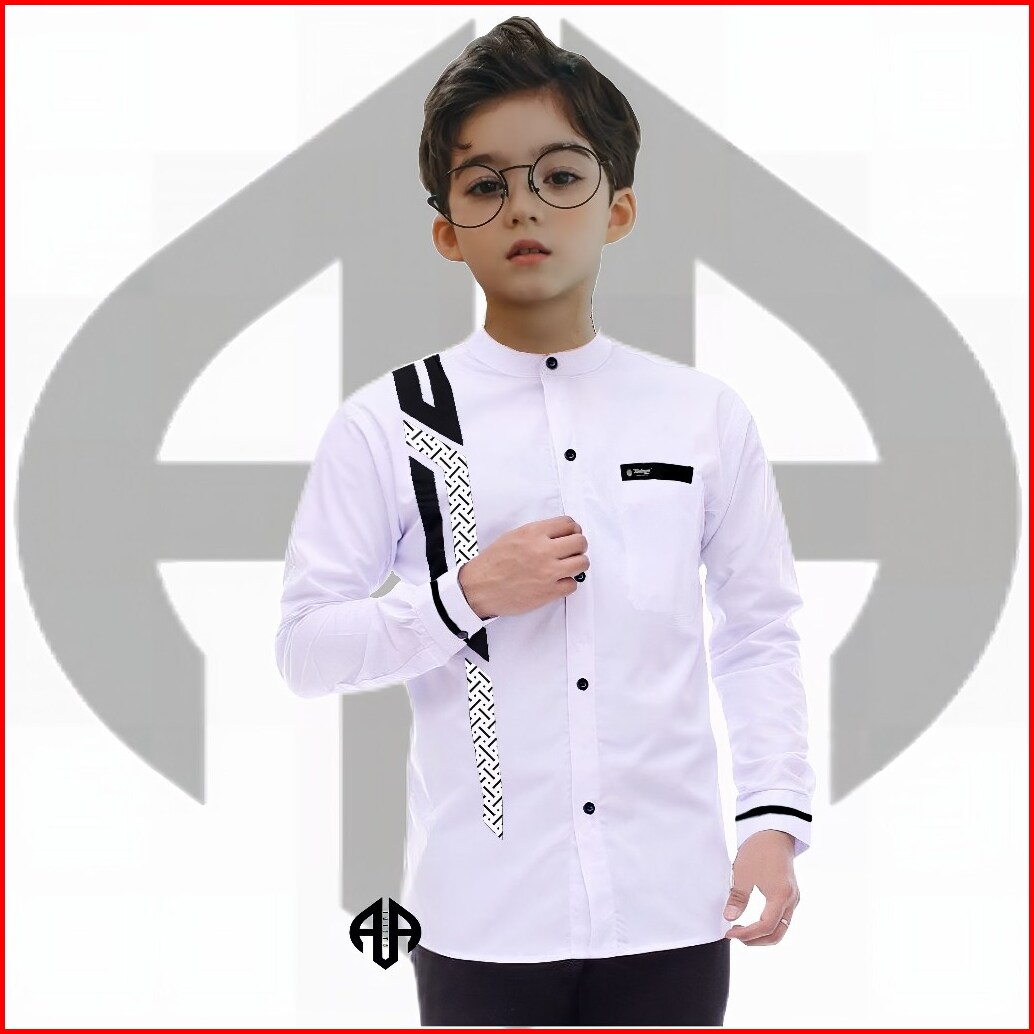 Baju Koko Anak Lengan Panjang Dan Berkacing Rapi Kombinasi Motif Sinergi Kombinasi Batik Umur 5-14 Tahun