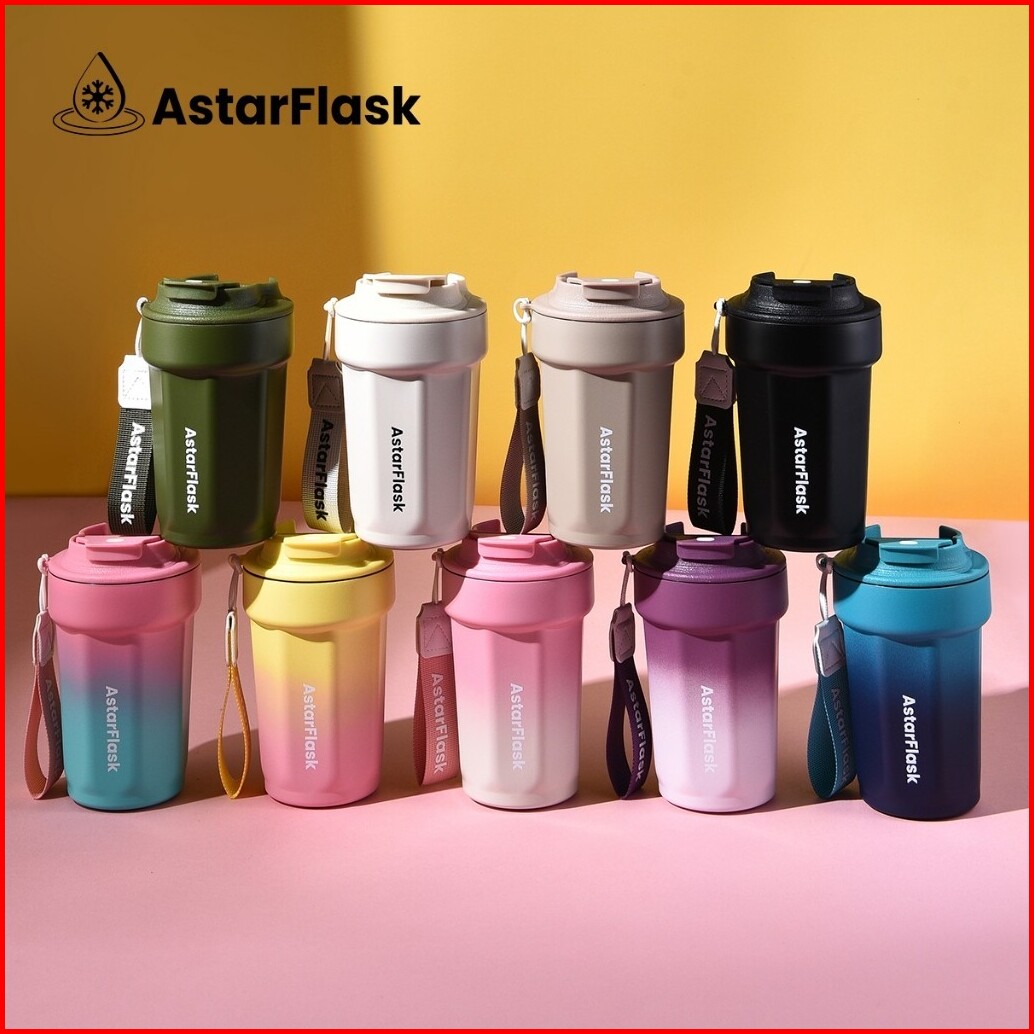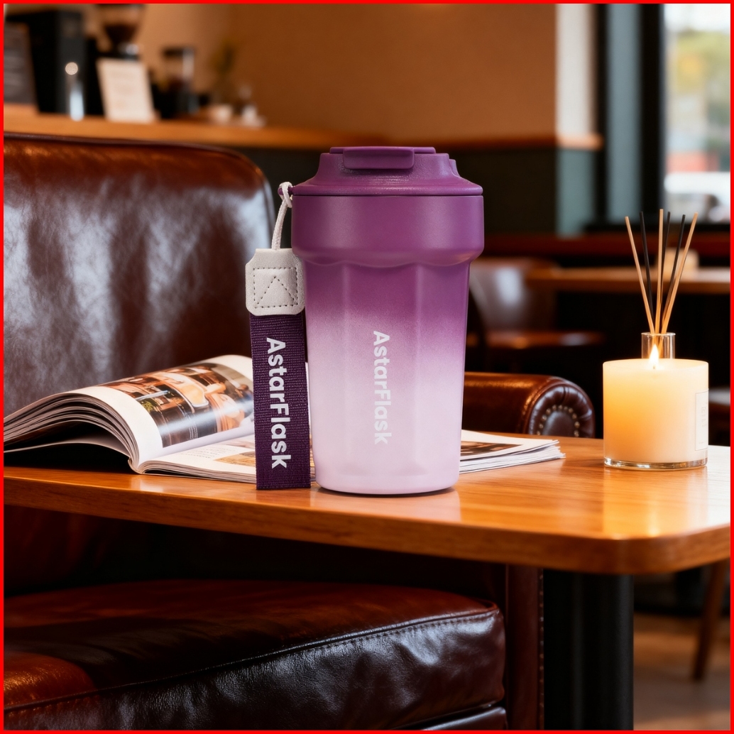 Astarflask Tumbler Stainless Vacuum Tumbler Tahan Panas Dingin 24 Jam Botol Minum Aesthetic Gelas Kopi Tumbler Ungu Mug