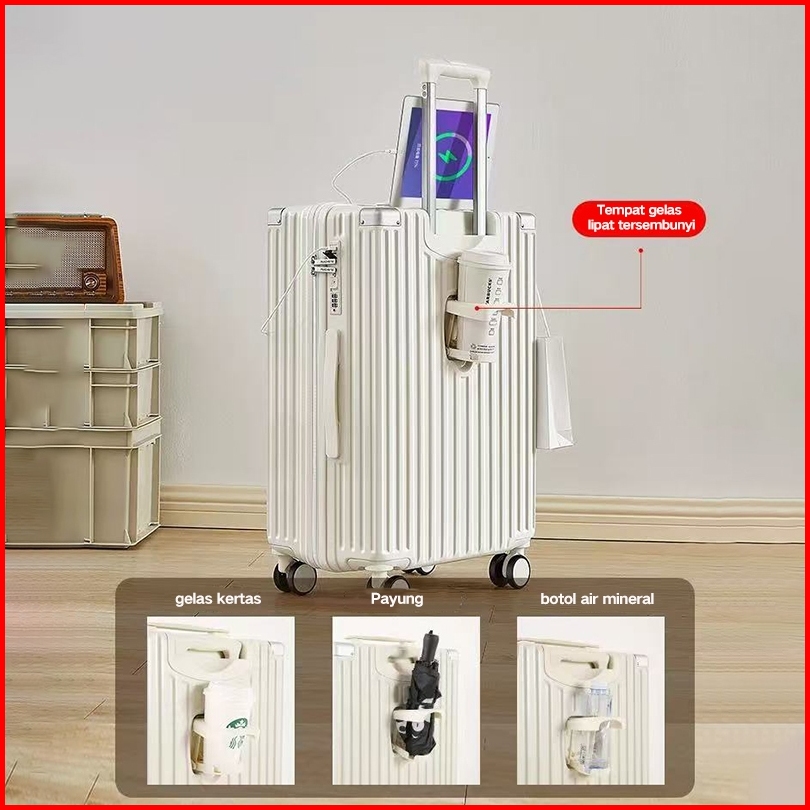 Cece Koper Travel Abs Pc 18 20 22 24 26 28 Inch Dengan Usb Port Cup Holder Ringan Kuat Stylish Terbaru