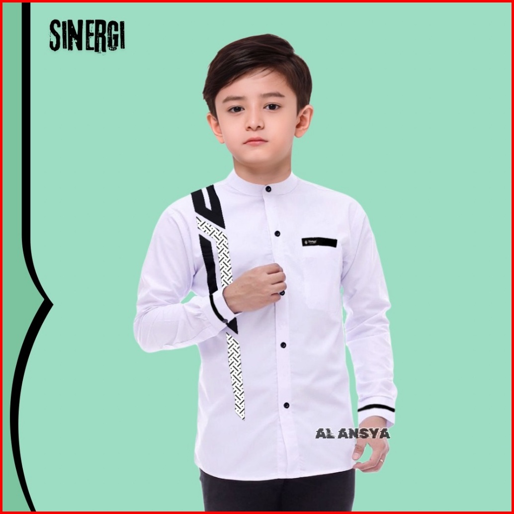 Baju Koko Anak Atasan Muslim Anak Laki Laki Kemeja Koko Anak Lengan Panjang Kombinasi Batik Bahan Adem Usia 5-14 Tahun