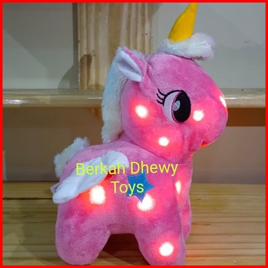 Boneka Kuda Poni Unicorn Led Menyala Ukuran 35cm Berkualitas Sni