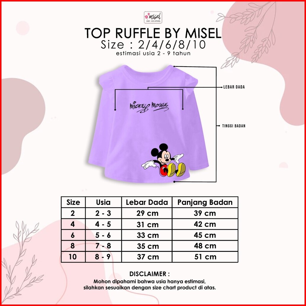 Kaos Ruffle Panjang Baju Anak Perempuan Usia 2-10 Tahun Adem Nyaman