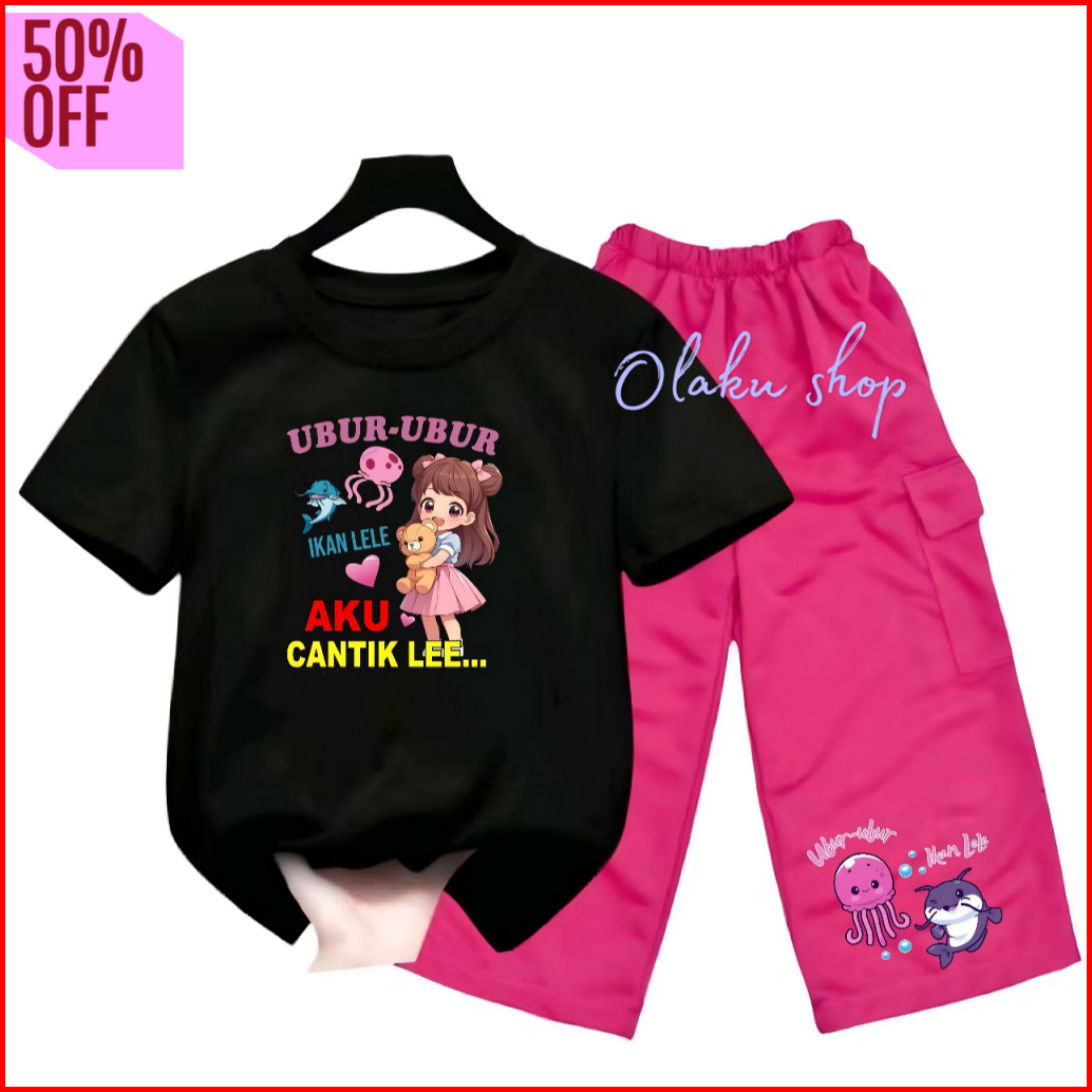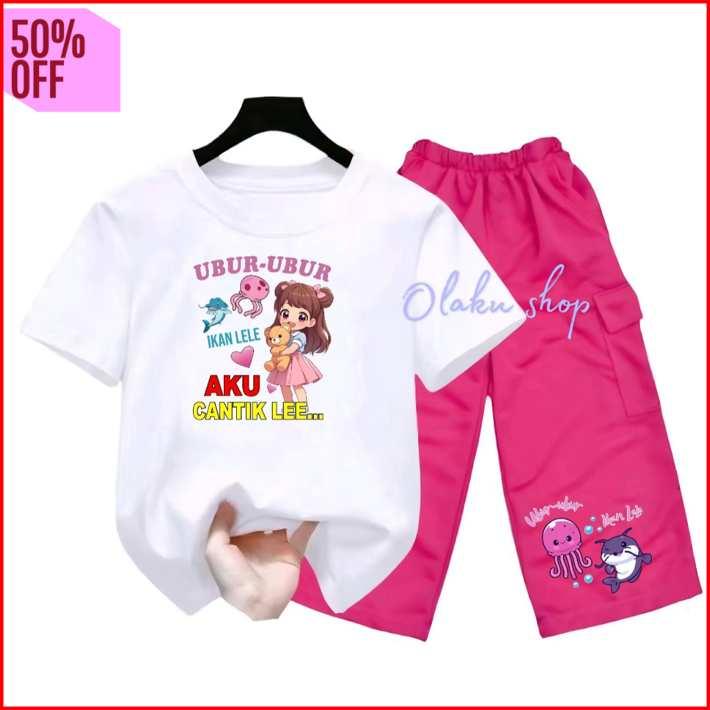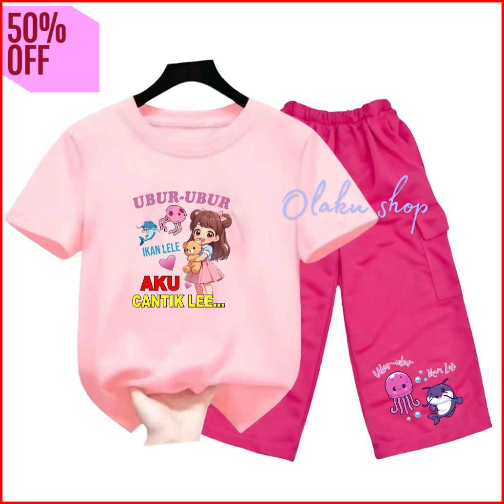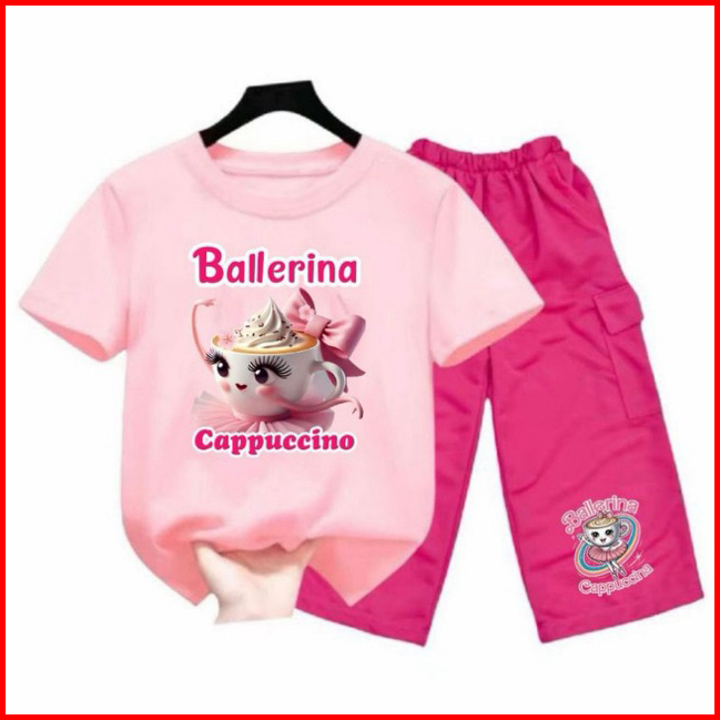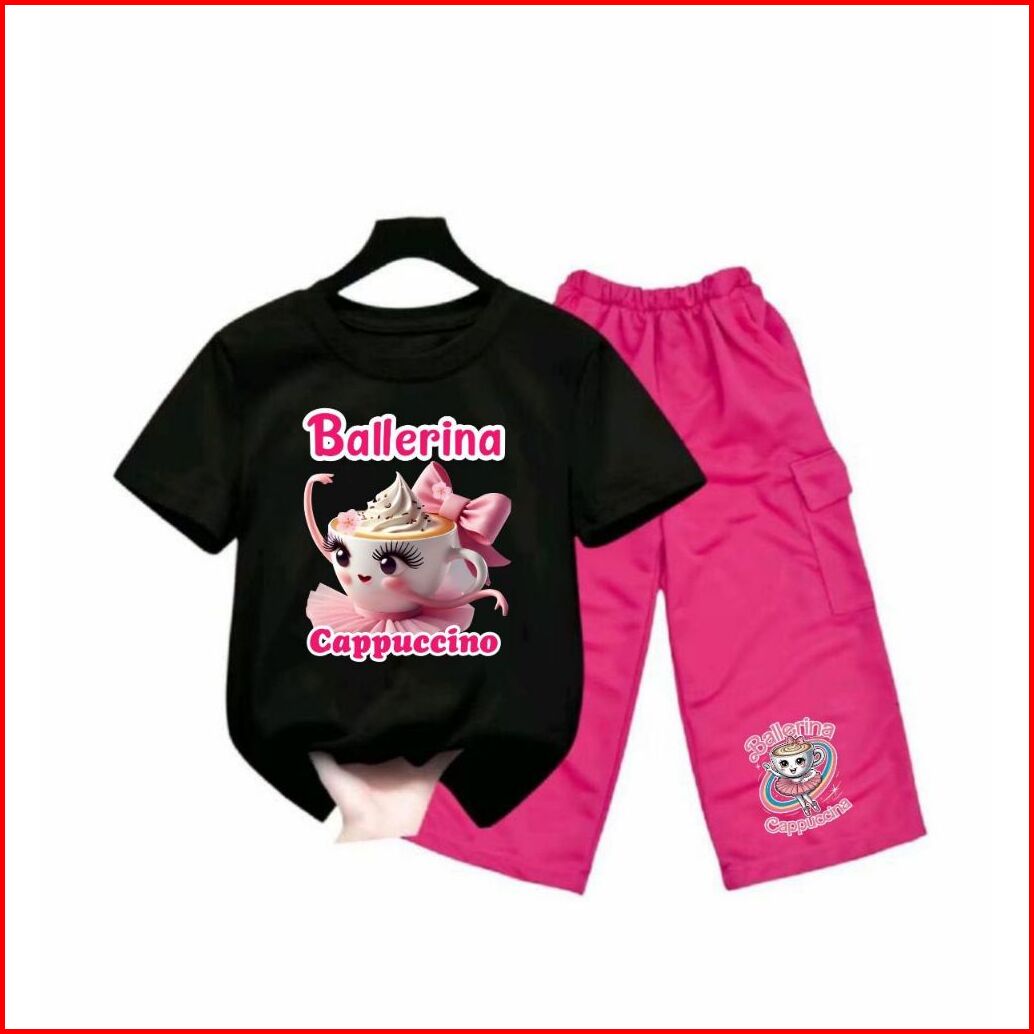 Setelan Anak Perempuan Ballerina Capuchina Celana Kargo 2-12 Tahun Oneset Kargo Anak Baju Kaos Lengan Pendek Motif Anoma