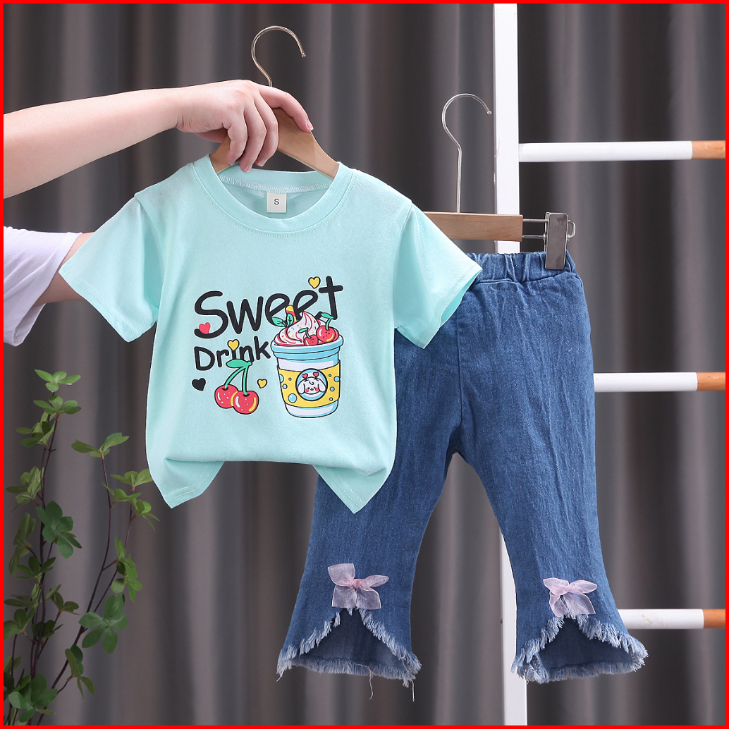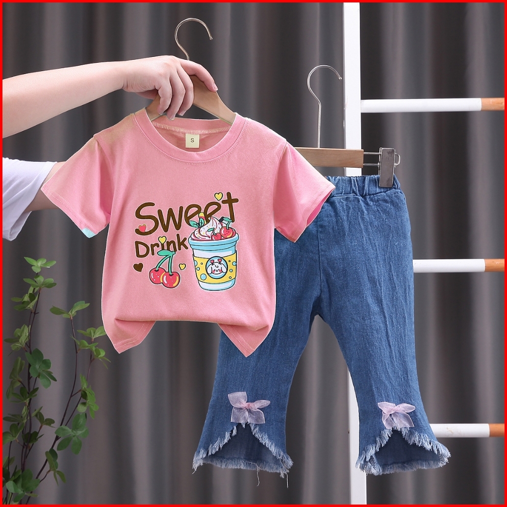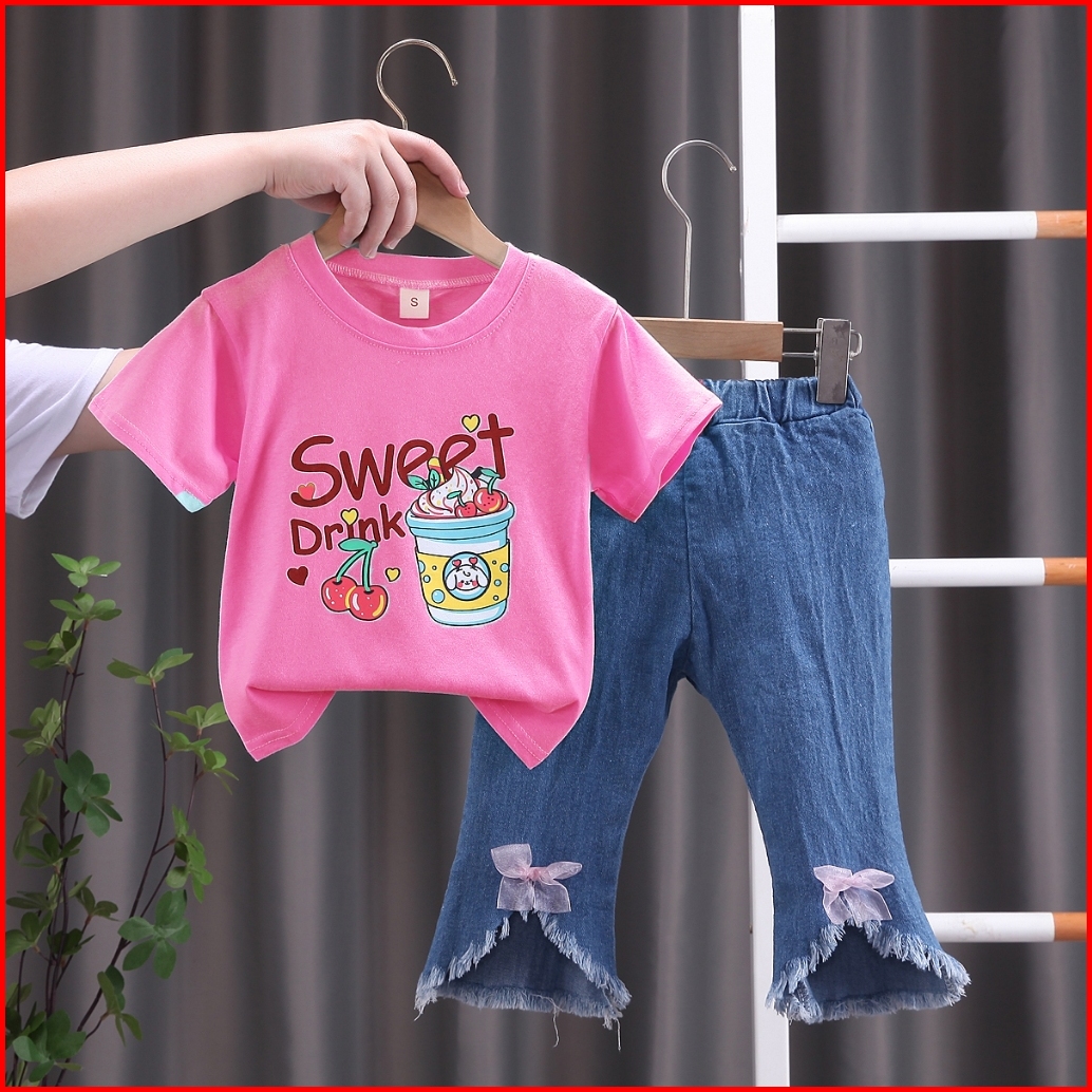 Setelan Anak Baju Aanak Motif Printing Terbaru Motif Sweet Drink Cerry Usia 1-5 Tahun