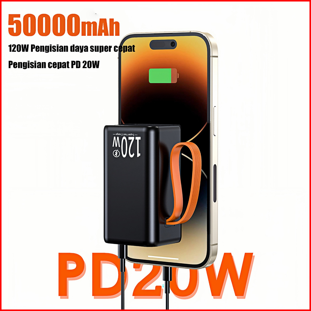 Power Bank 50000mah Super Fast Charging 120w Kapasitas Besar Pd 3.0 Led Senter Display Powerbank For Android Iphone