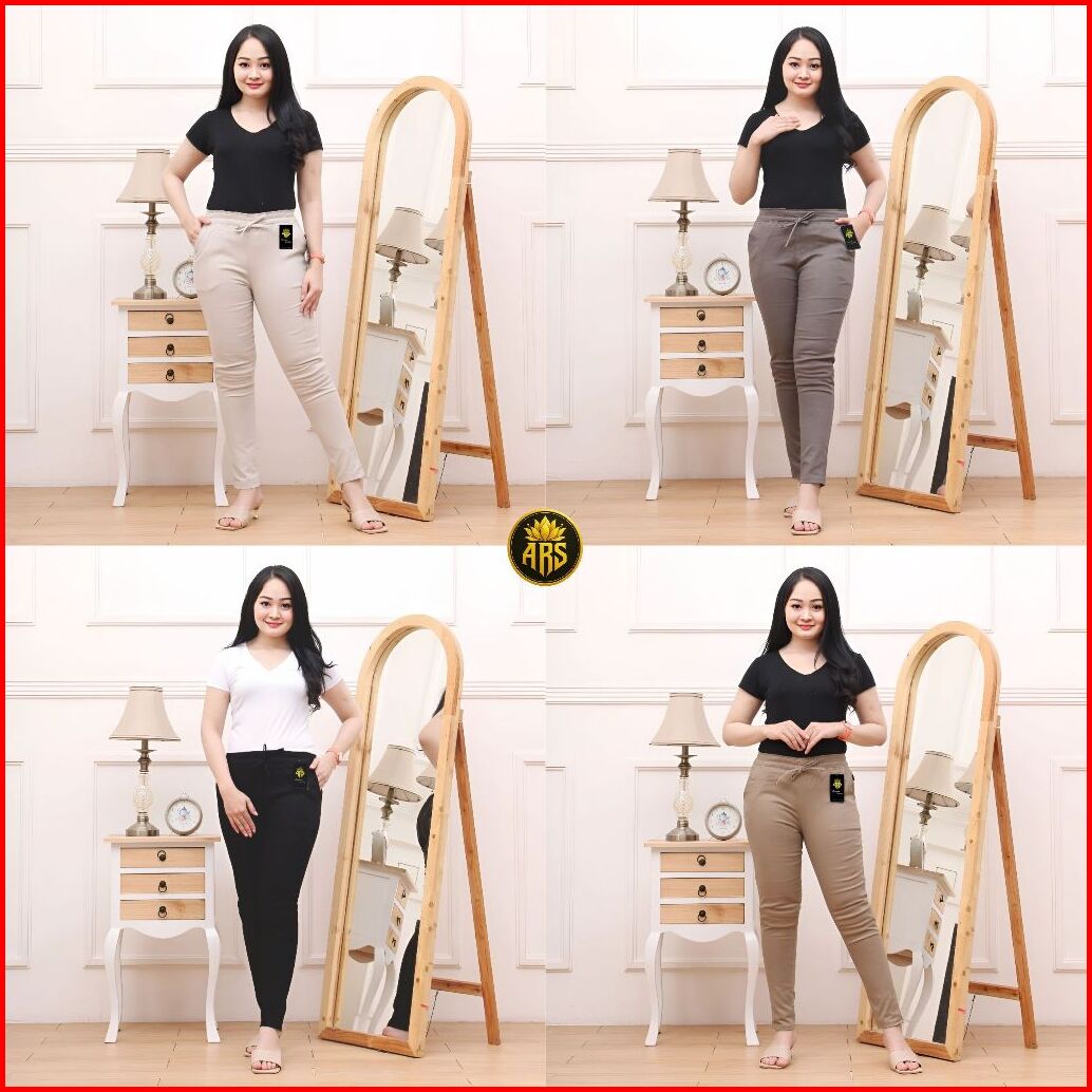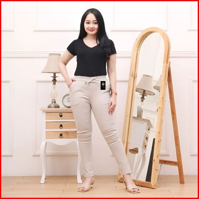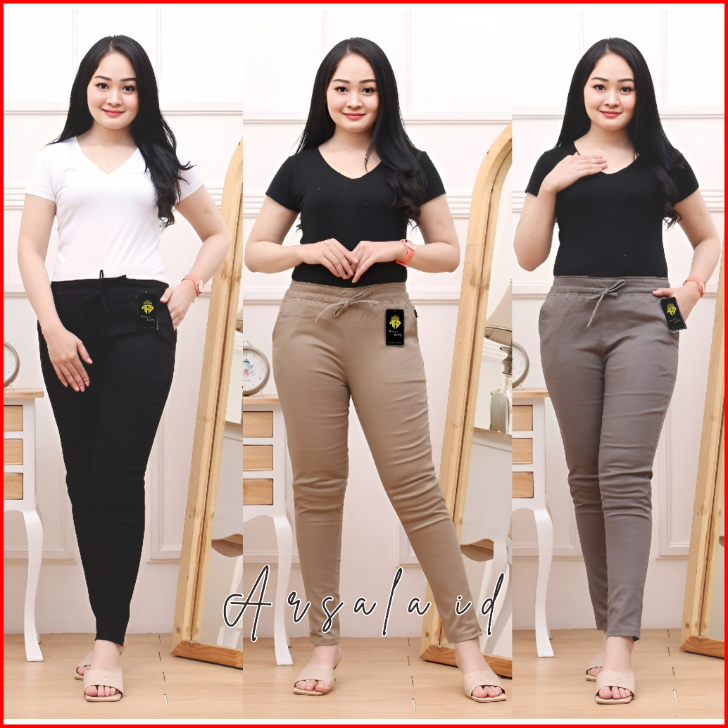 Celana Chinos Wanita Stretch Model Pinggang Full Karet - Baggy Pants Twill Combed Halus Dan Tebal