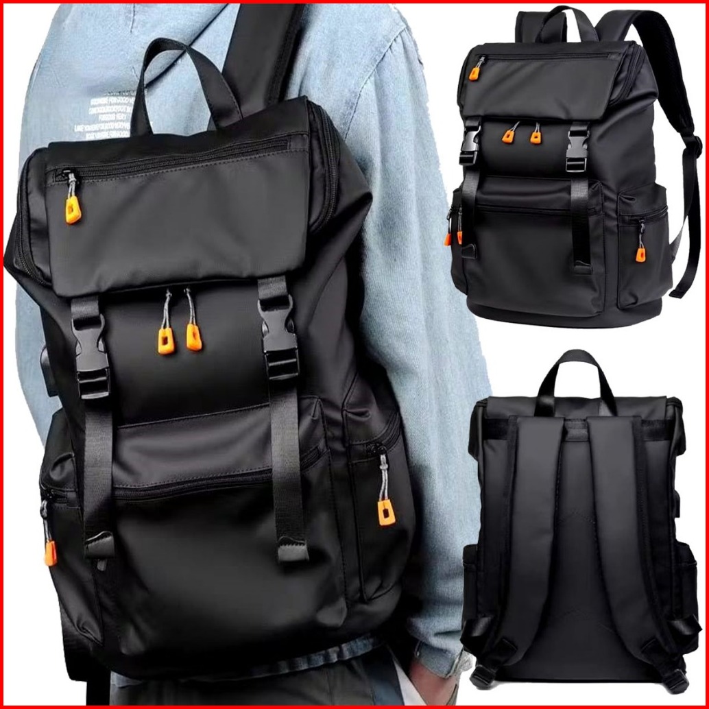 Cilla - Tas Ransel Pria Waterproof Hitam Polos