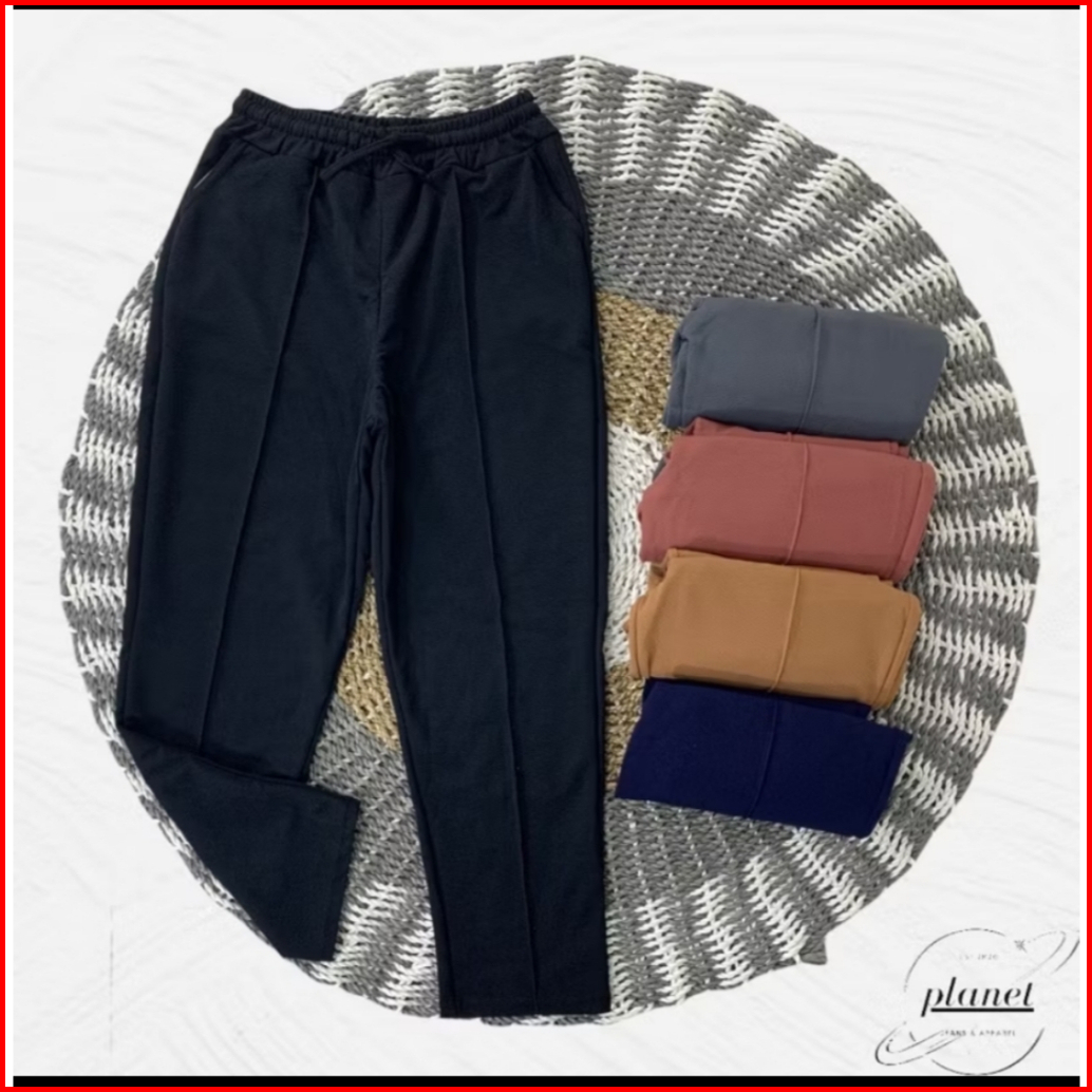 Celana Scuba Panjang Polos Jumbo 35-120 Kg Big Size Wanita Melar Street Tali