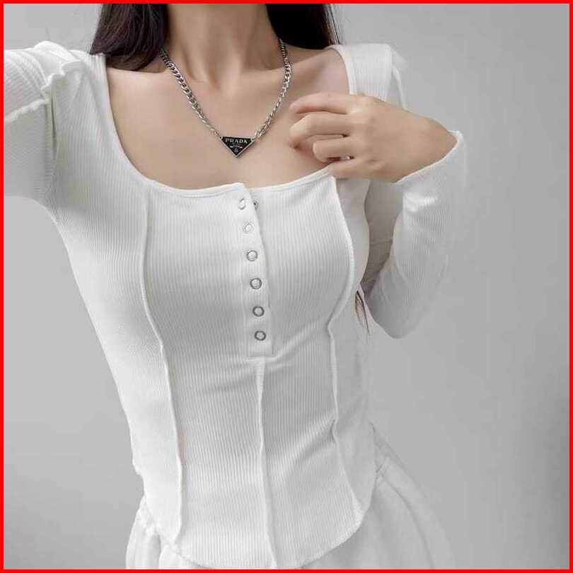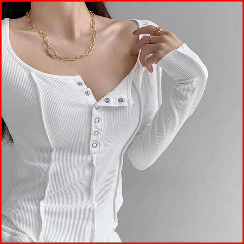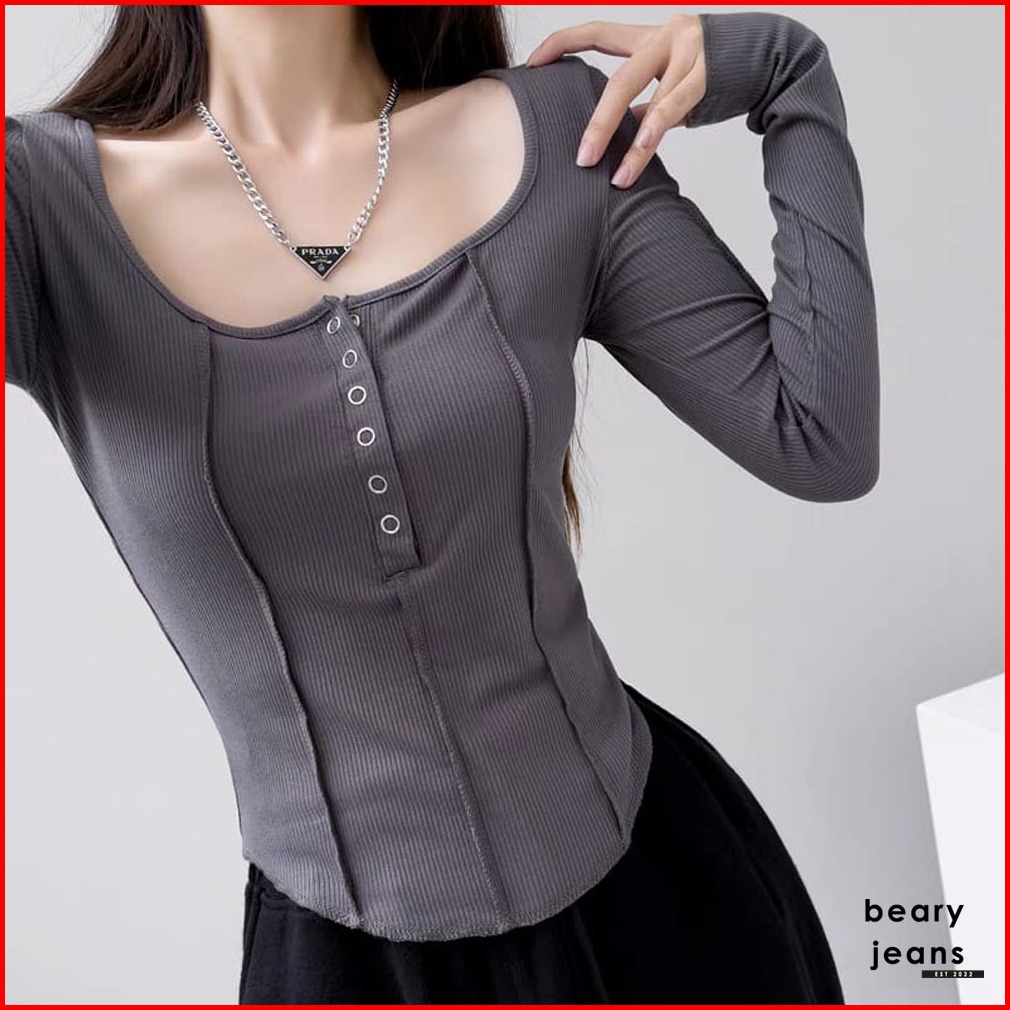 Beary Jeans Bj169 Button Long Sleeve Crop Top T-shirt Slim Kaos Wanita Skinny Inside Korean Fashion