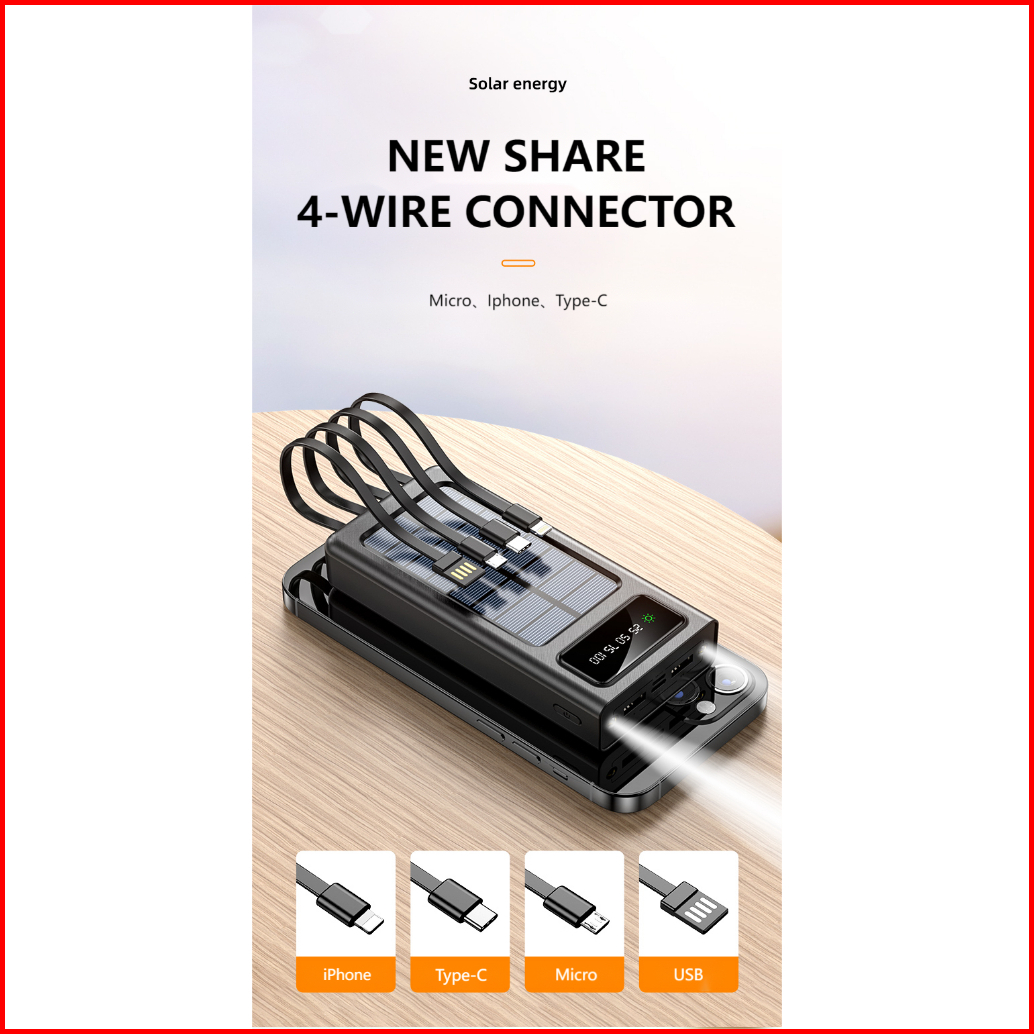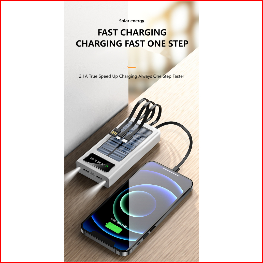 Hester 80000mah Power Bank Solar Powerbank Original Power Bank 100000mah Powerbank Robot 2usb Ports Built-in 4 Cable Pow