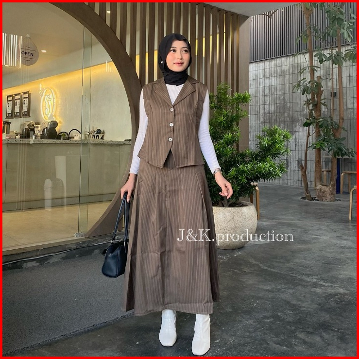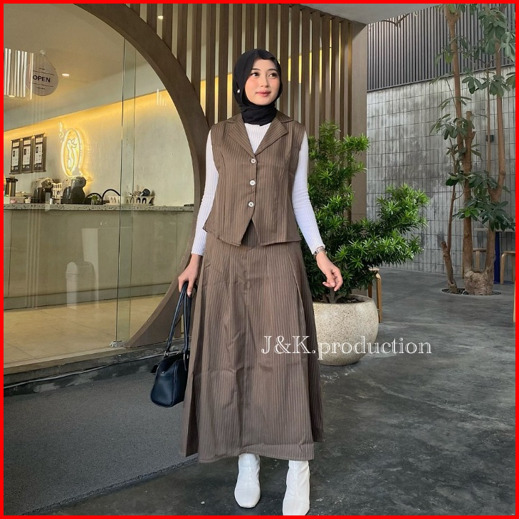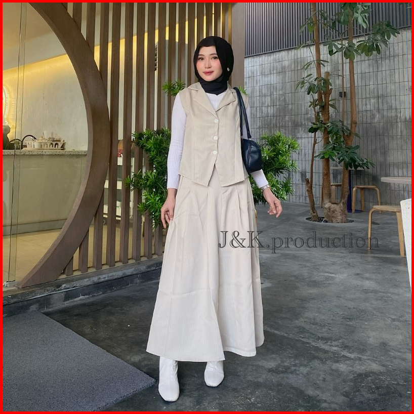 Bella Vest Set - Set Blazer Wanita - Vest Outer Set - Setelan Rok Wanita Salur - Vest Wanita- One Set Skirt - Maxi Skirt