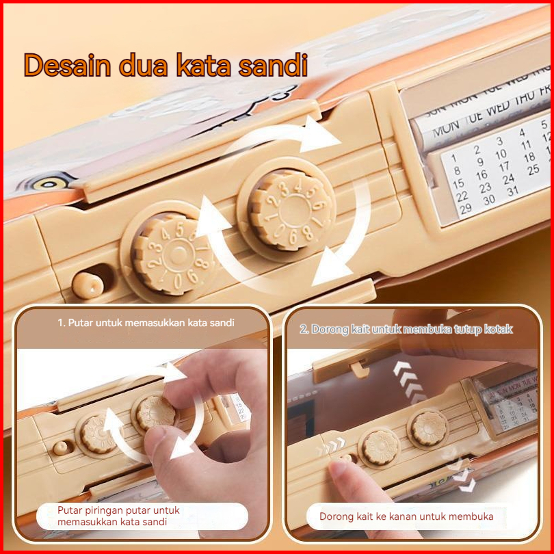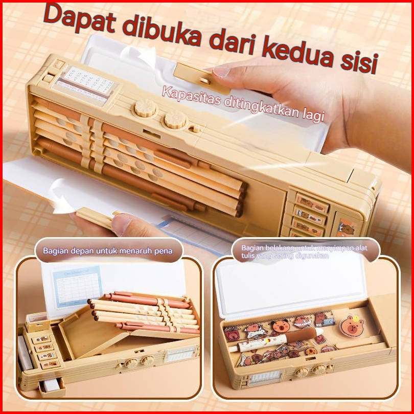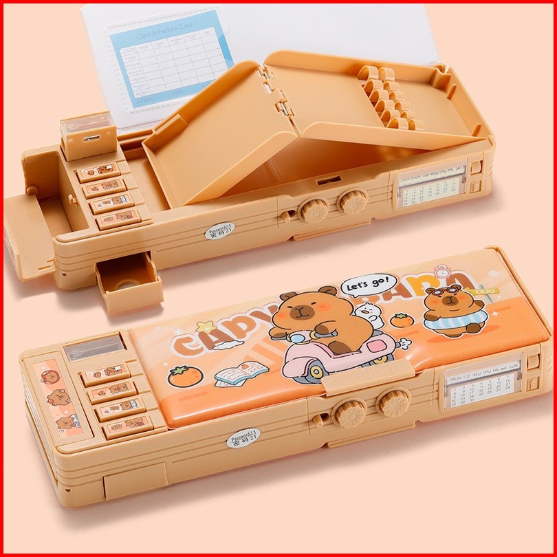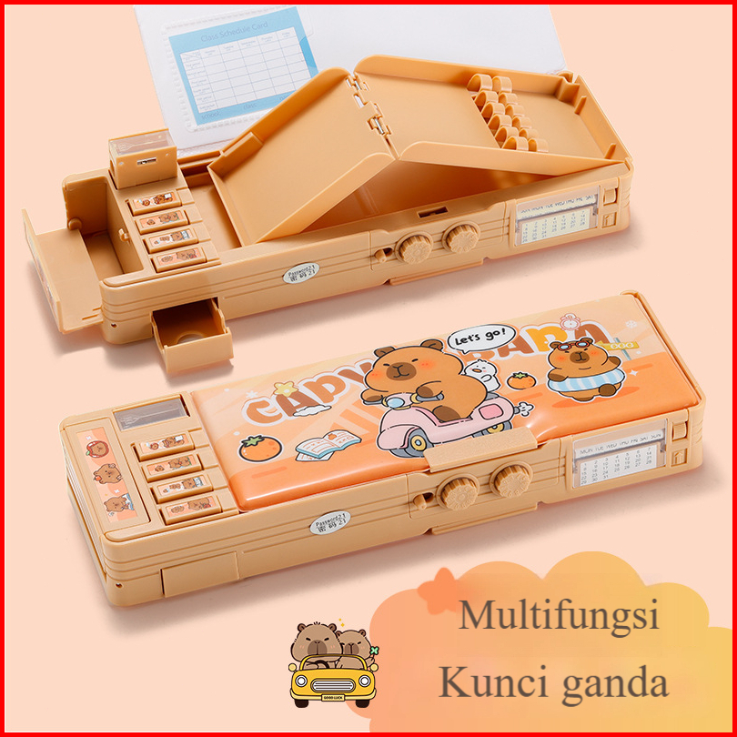 Ready Stockkapibala Kotak Pensil Dengan Kunci Kata Sandi Kotak Pensil Multifungsi Dua Sisi Multifungsi Perempuan Kotak P