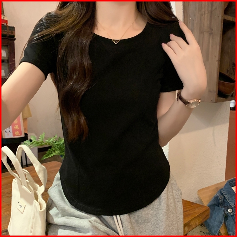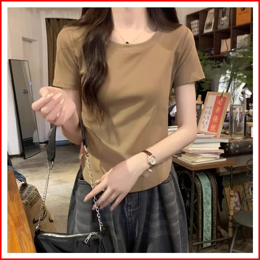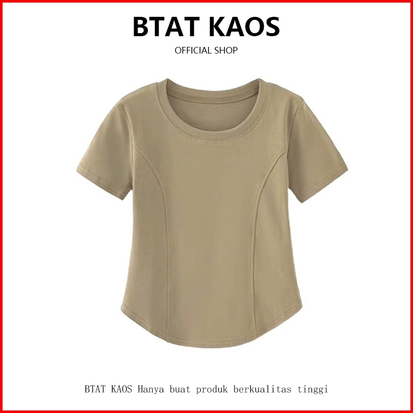 Btat Kaos Lengan Pendek Crew Neck Berwarna Khaki Atasan Crop Polos Slim Fit Ala Korea