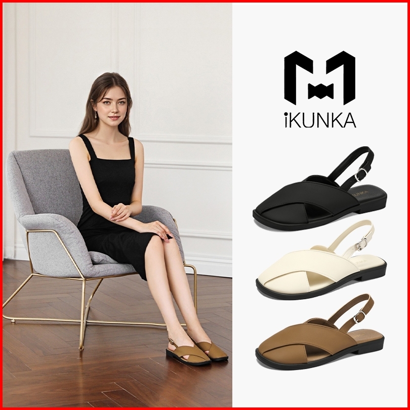 Ikunka Sendal Cewek Sandal Flat Wanita Slip Ons Santai Sepatu Casual Dail Lembut Nyaman Lv64