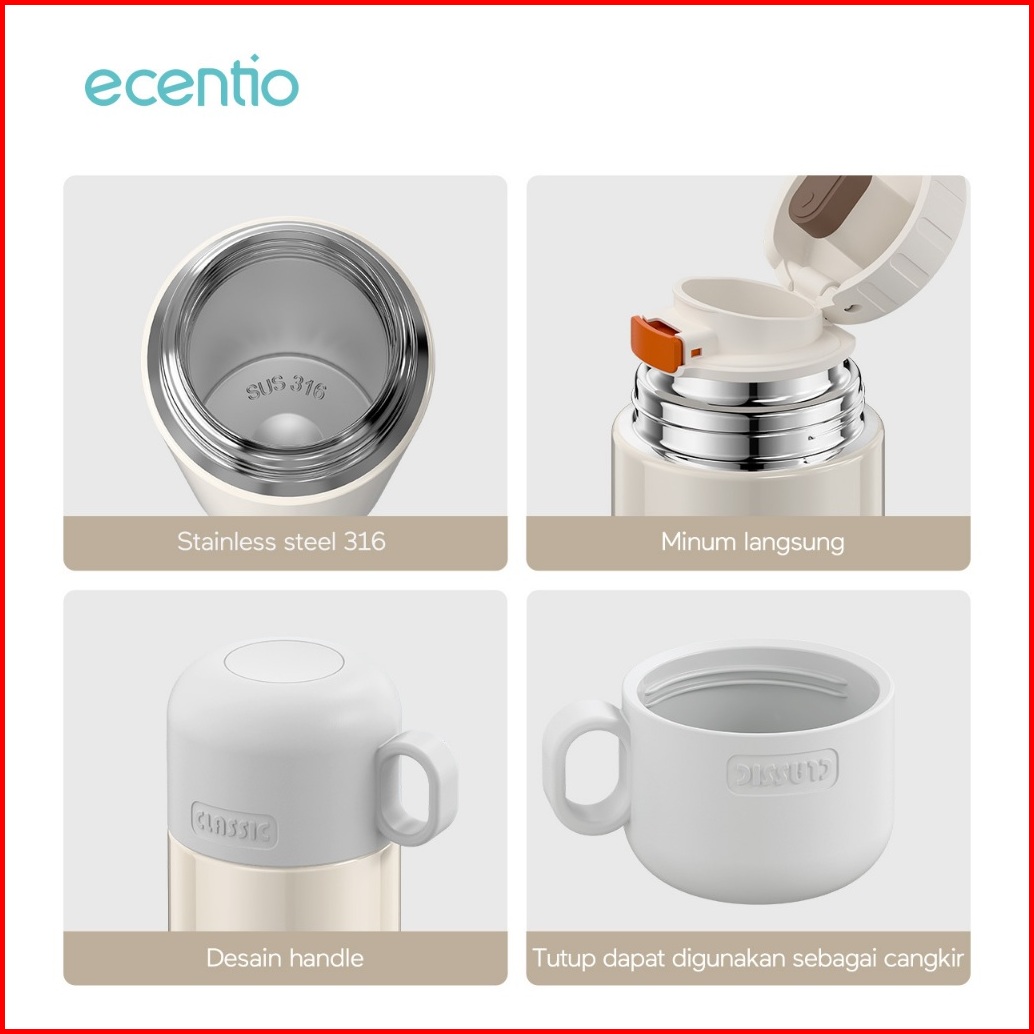 Ecentio Tumbler Stainless Aesthetic Tumblr Hot Cold 500ml Termos Stainless Steel Termos 316 Stainless Vacuum Flask 2in1