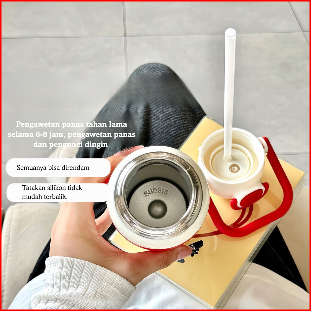 600ml Botol Minum Stainless 316 Tumbler Bunny Bunga Anti Tumpah Dan Tahan Dingin Desain Lucu Praktis Dan Portabel