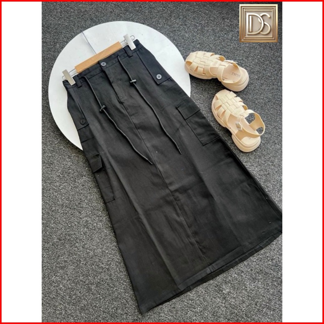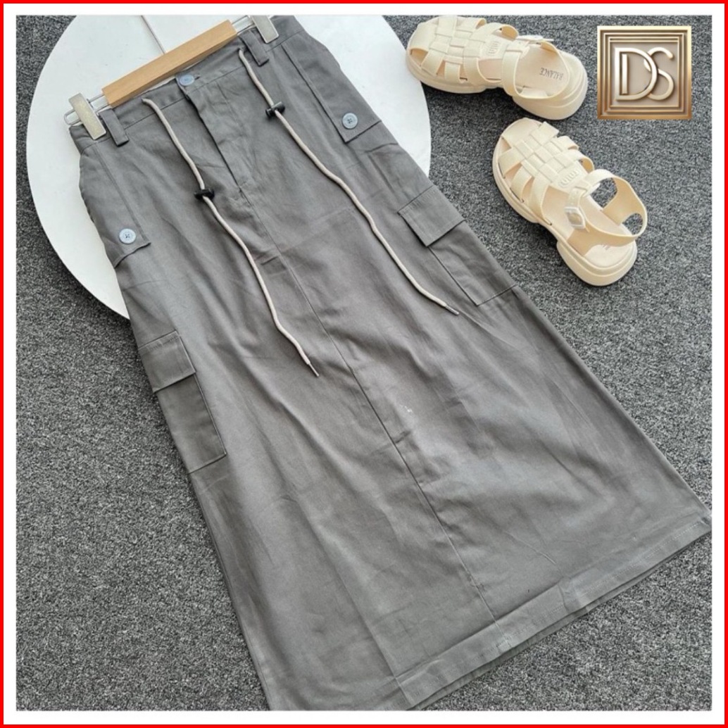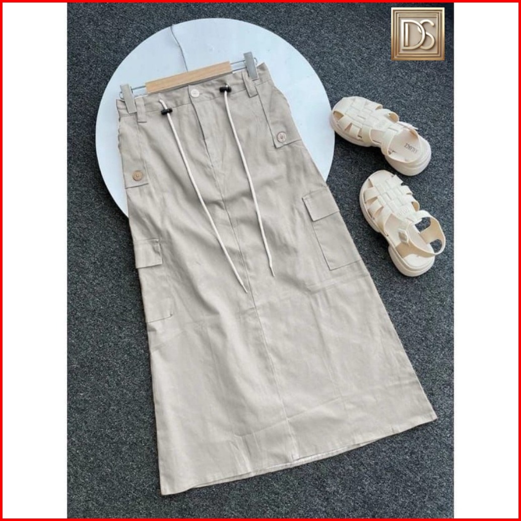 Rok Cargo- Virona Rok Cargo Katun Twill Wanita Ikat Pinggang Cargo Skirt Twill Premium