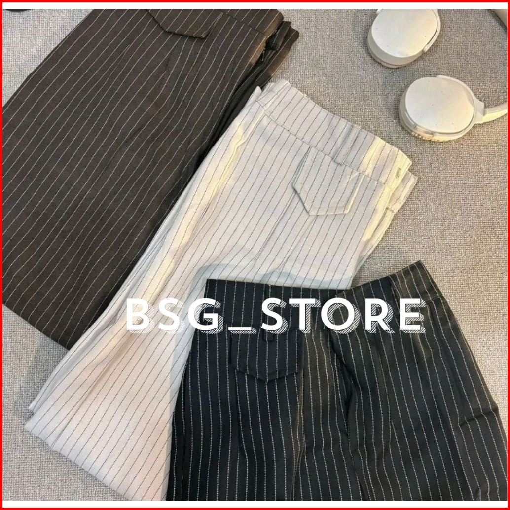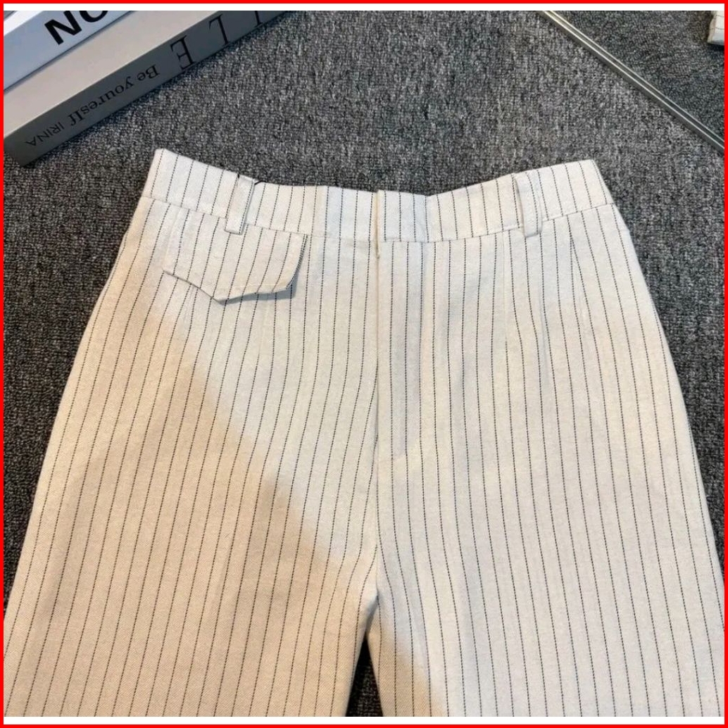 Oro Pants Stripe Bengkok - Celana Anti Kusut - Celana Panjang Korean Style - Celana Panjang Kulot Wanita Hightwaist