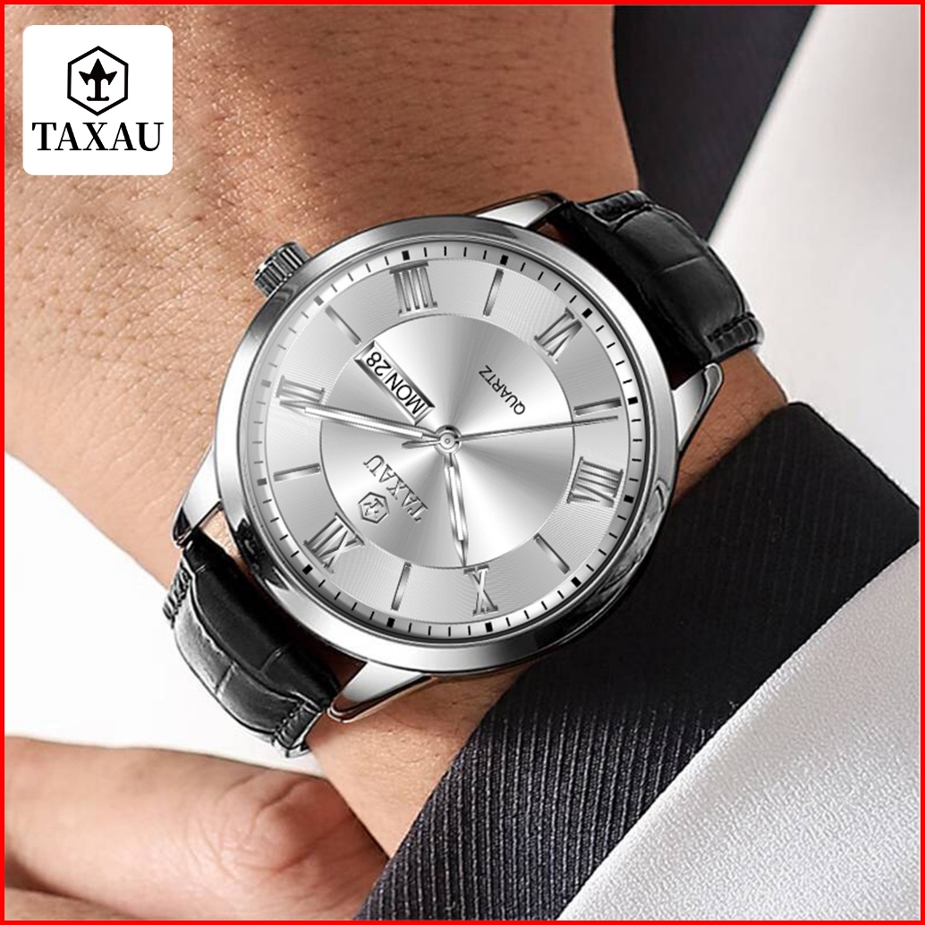 Taxau Jam Tangan Pria Original 100 Kulit Anti Air Mewah Fashion Bisnis Casual Keren Analog Quartz Jam Tangan Cowok 8408