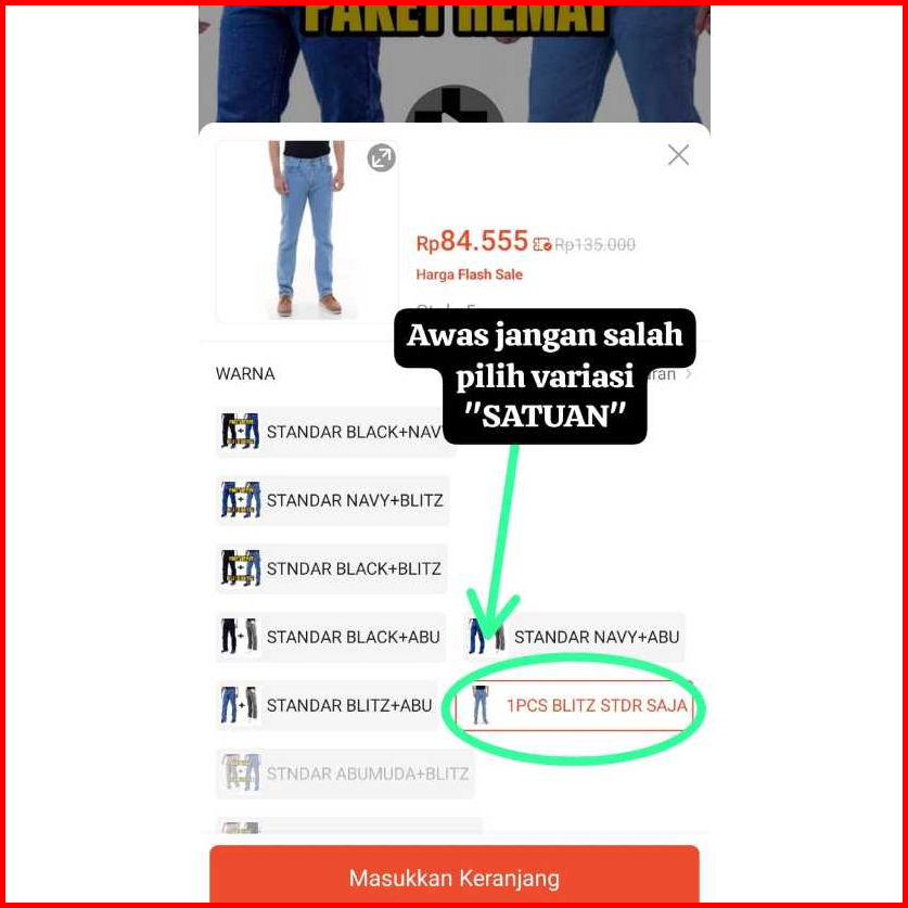 Cuci Gudang Beli 1 Gratis 1 Jeans Standar Warna Hitam Navi Blitz