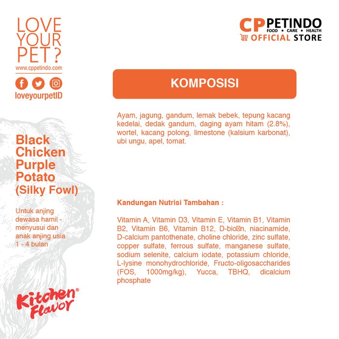Makanan Anjing Kitchen Flavor Silky Fowl Meat Cube Black Chicken Mommy & Puppy Dog Food 1.5kg Kitchen Flavor