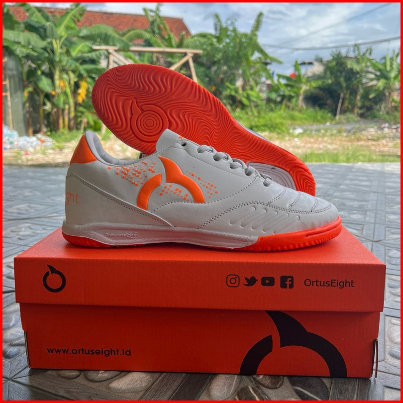 Sepatu Futsal Ortuseight Invory White Orange Free Kaos Kaki Dan Skin Deker