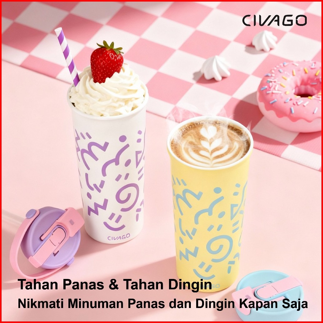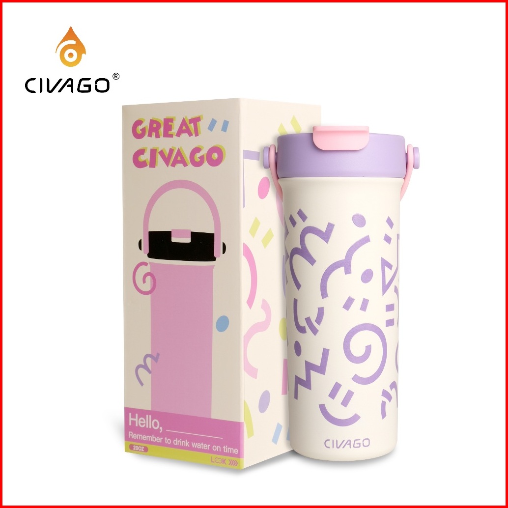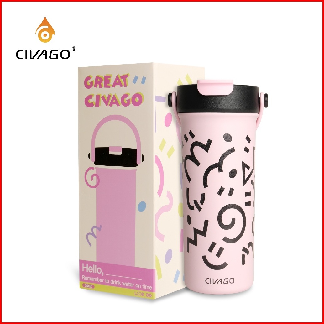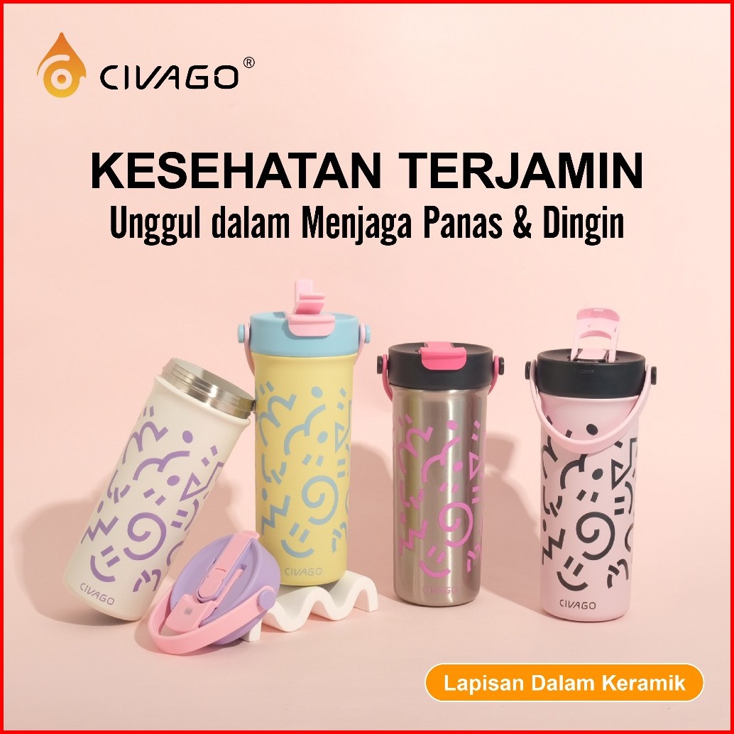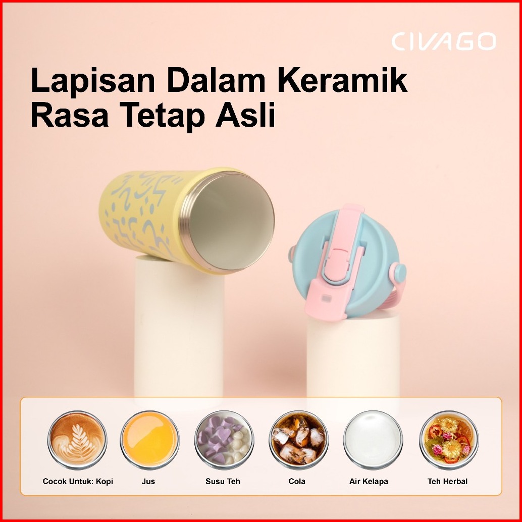Civago 20oz 591ml Tumbler Kopi Keramik Dengan Tutup Kapasitas Besar Cangkir Travel Lucu Botol Air Tahan Bocor Untuk Hadi