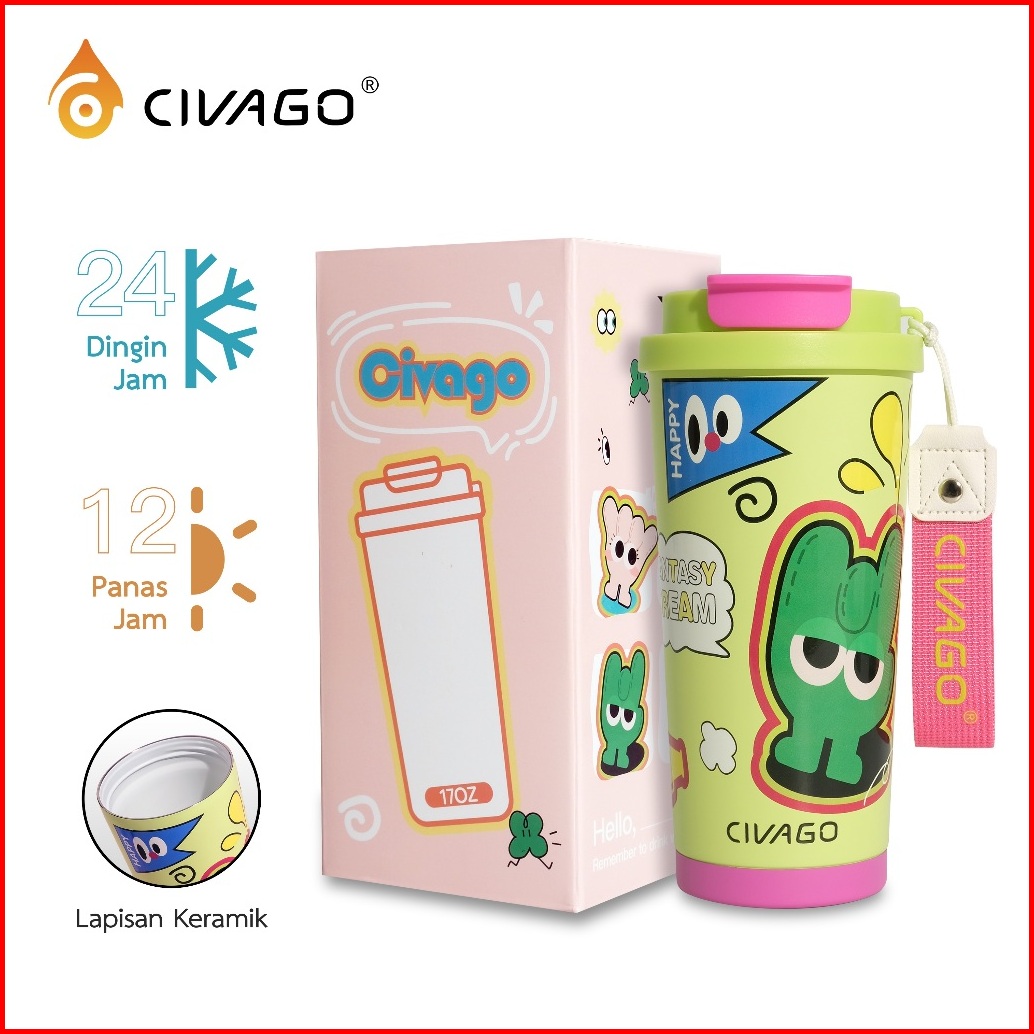 Civago17oz 502mltumbler Isolasi Vakum Dengan Sedotan Gelas Kopi Keramik Kapasitas Besar Seri Kartun