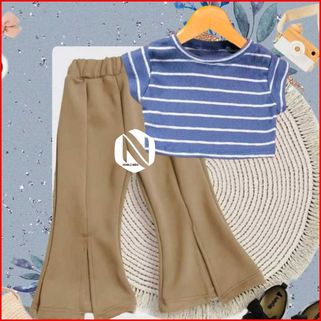 Noble Set Celana Cutbray Croptop Anak Salur Setelan Baju Anak Perempuan