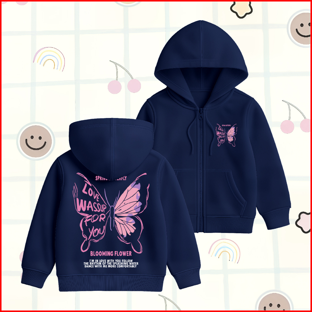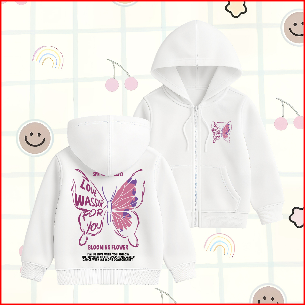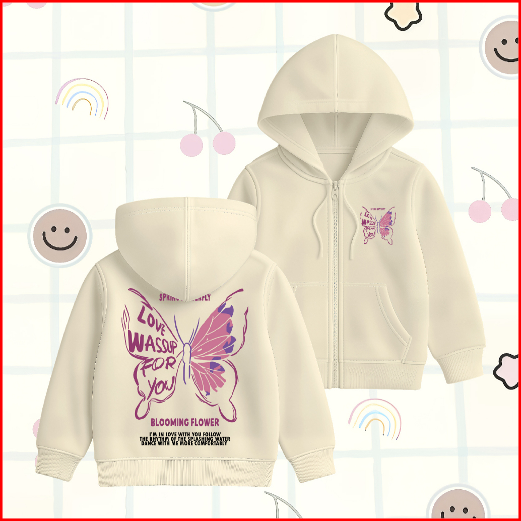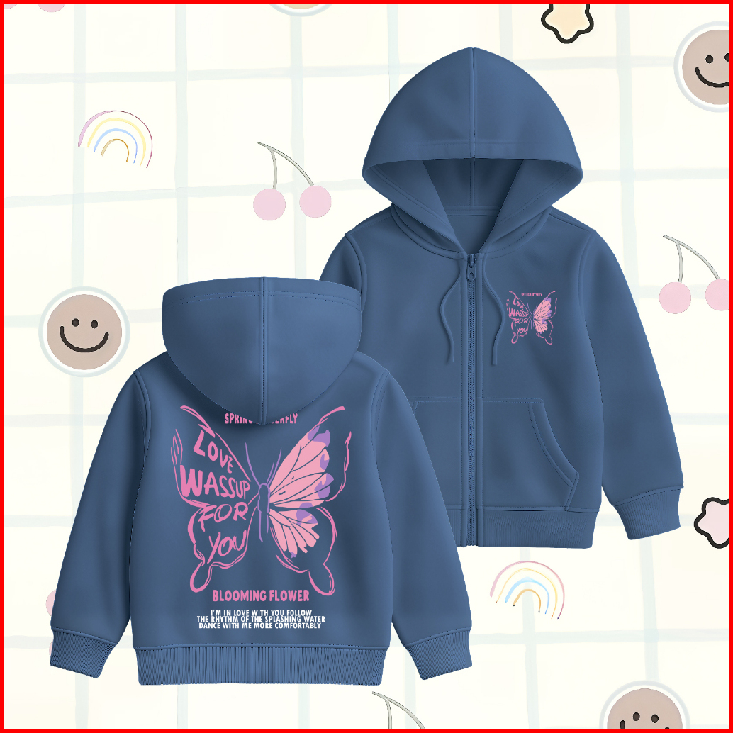 Wgud S Kids Hoodie Zipper Anak Spring Butterfly Umur 4-15 Tahun Laki-laki Perempuan