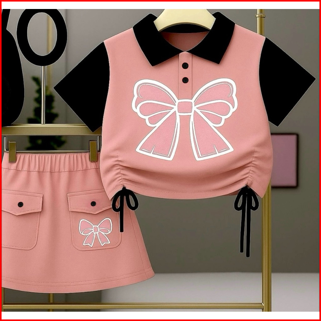 Setelan Krah Pita Perempuan Terbaru Model Serut Dan Rok Mini Usia 6bln-10 Tahun