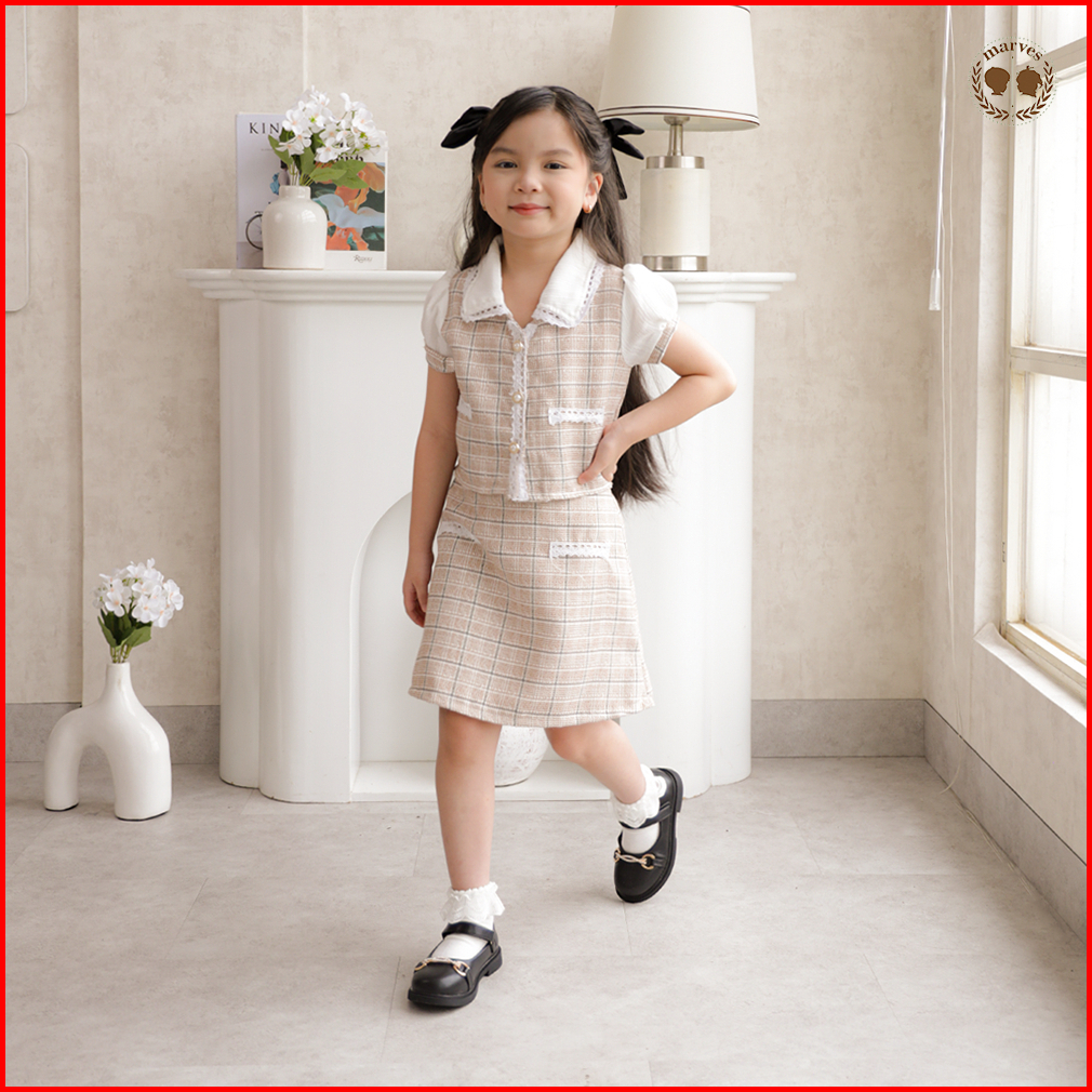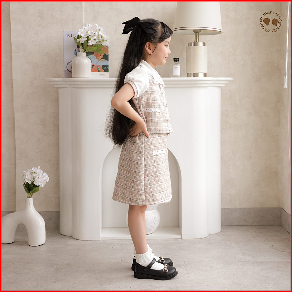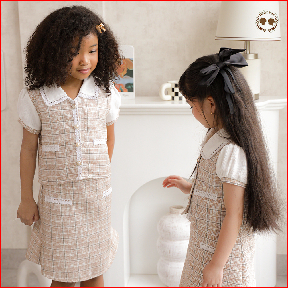 Marves Hyejin Setelan Baju Rok Anak Perempuan Korean Style Bahan Tweed Usia 2 Hingga 14 Tahun