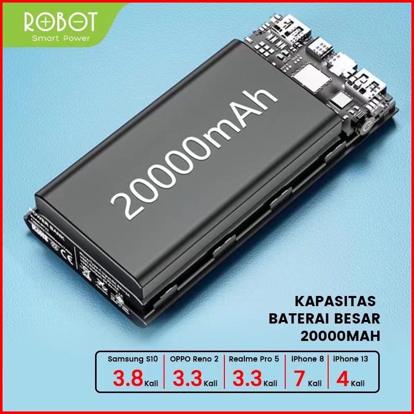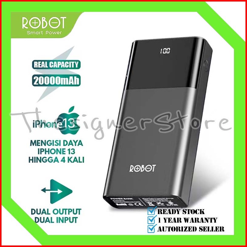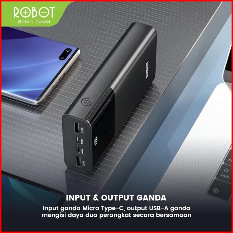 Robot Rt22 Powerbank 20000mah Dual Port Input Output Led Indicator Garansi Resmi 1 Tahun