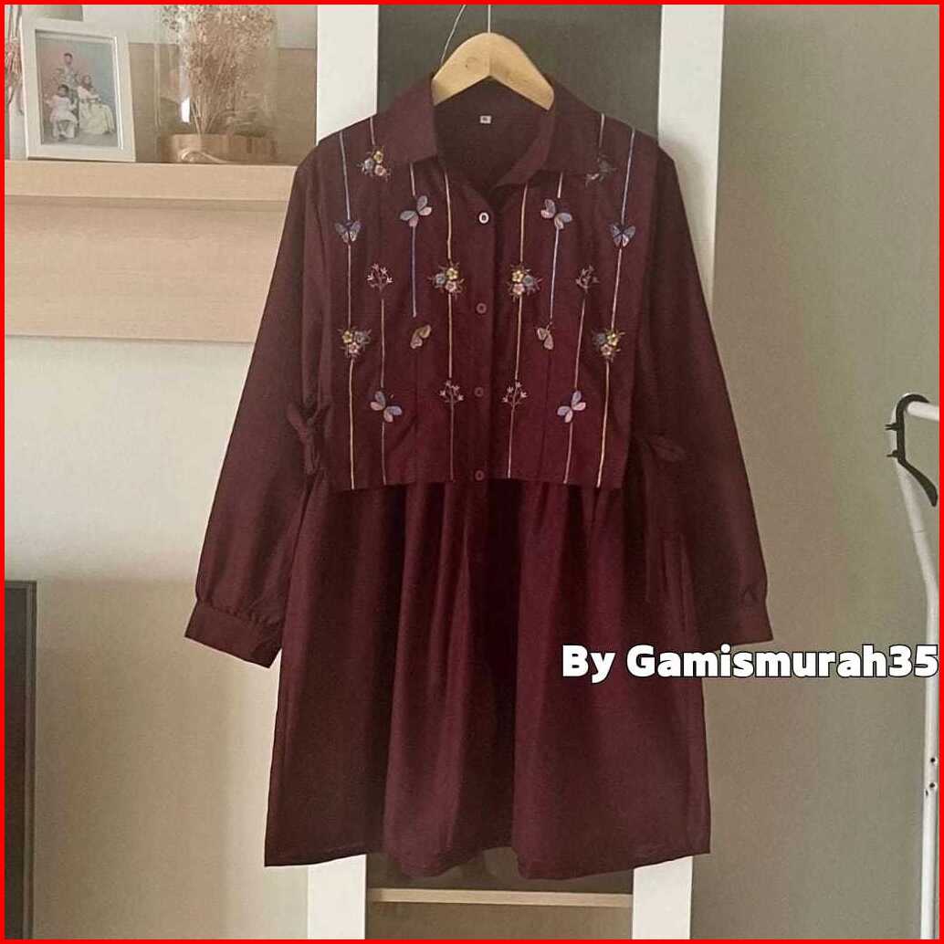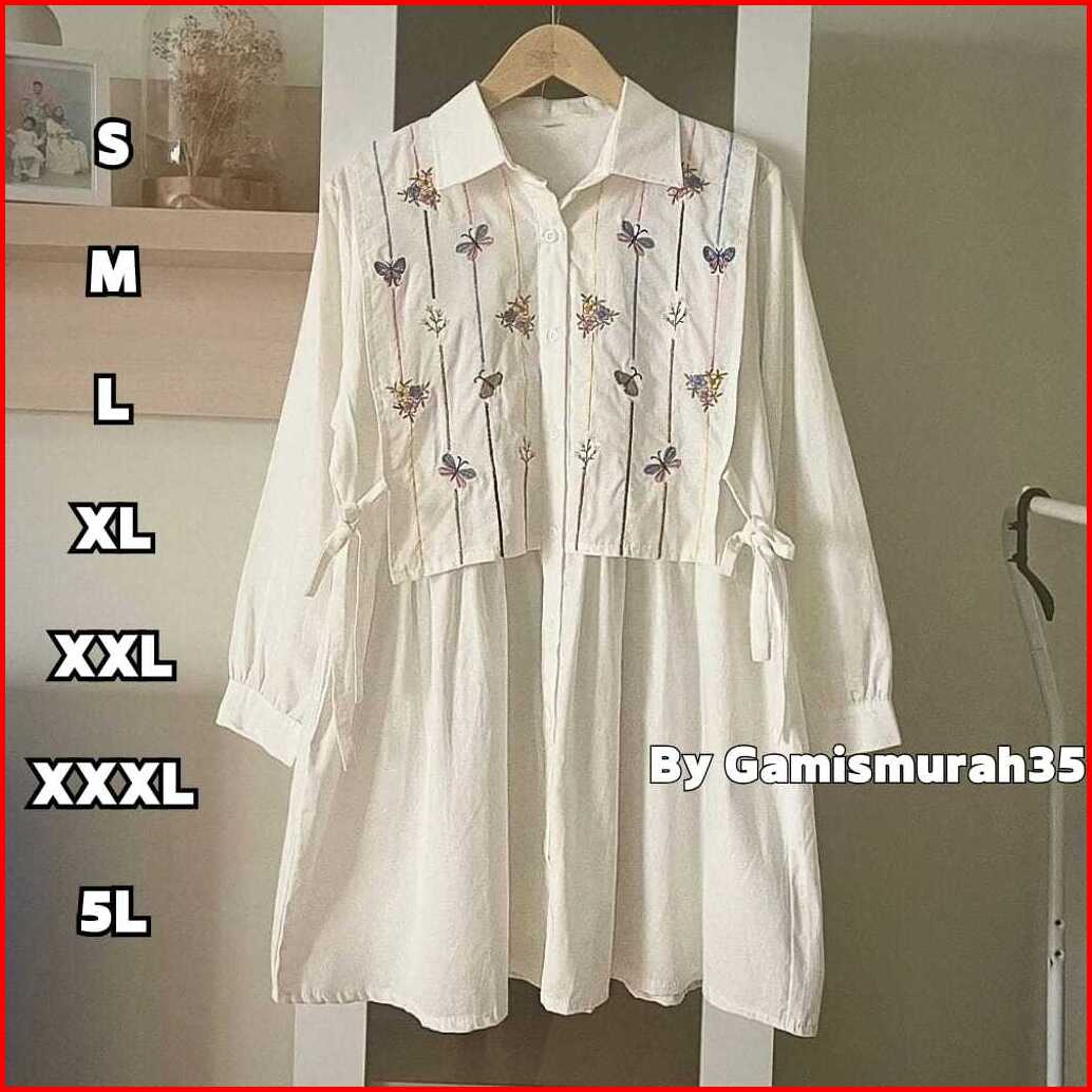 Tunik Embroidery Linen Ukuran S - 5l Savia Tunik Bordir Linen Motif Rompi Atasan Wanita Ukuran S M L Xl Xxl Xxxl 5l Hana