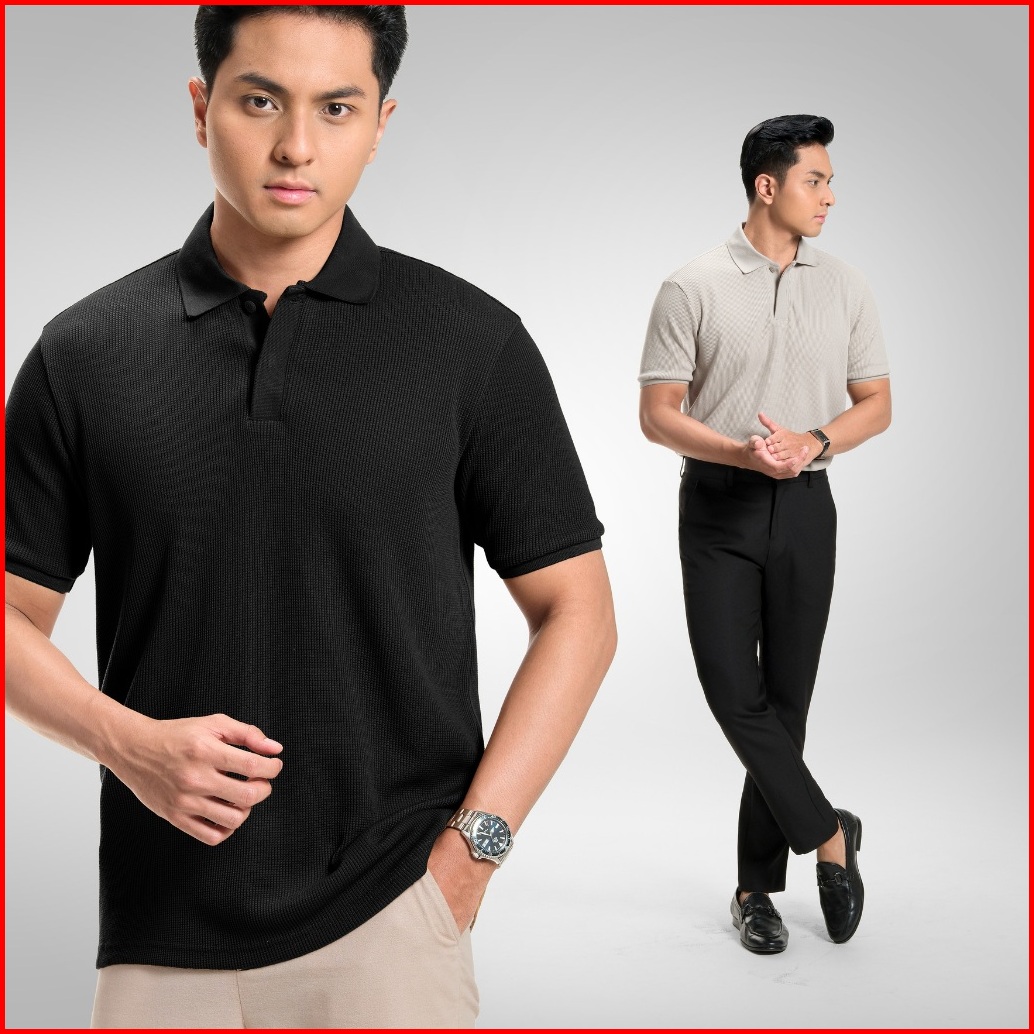 Cutoff Ezra Waffle Knit Polo Shirt Baju Kaos Textured Berkerah Lengan Pendek Pria