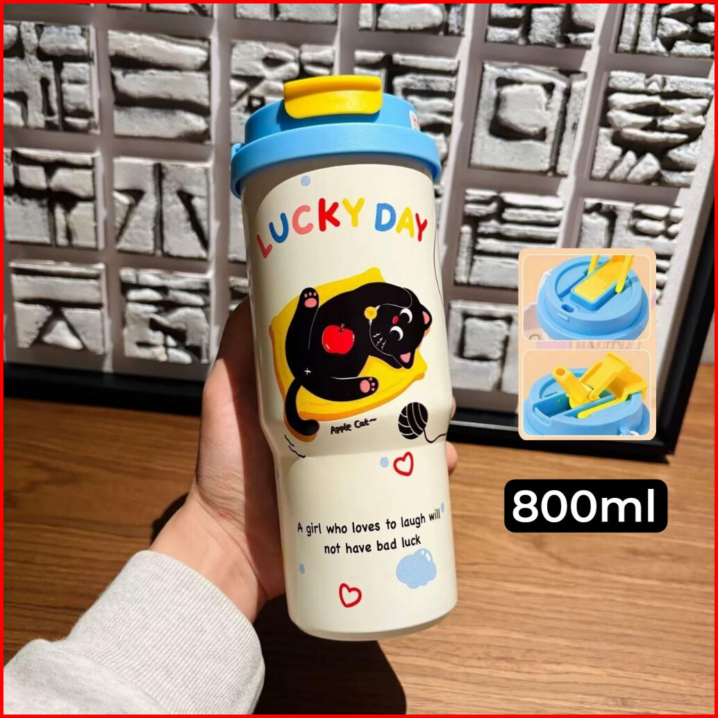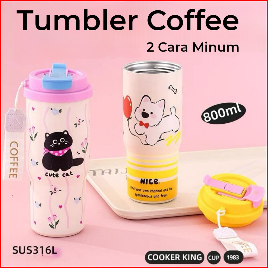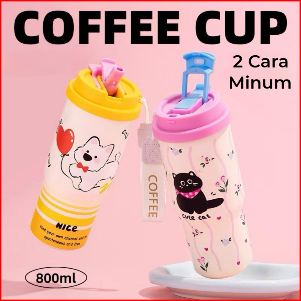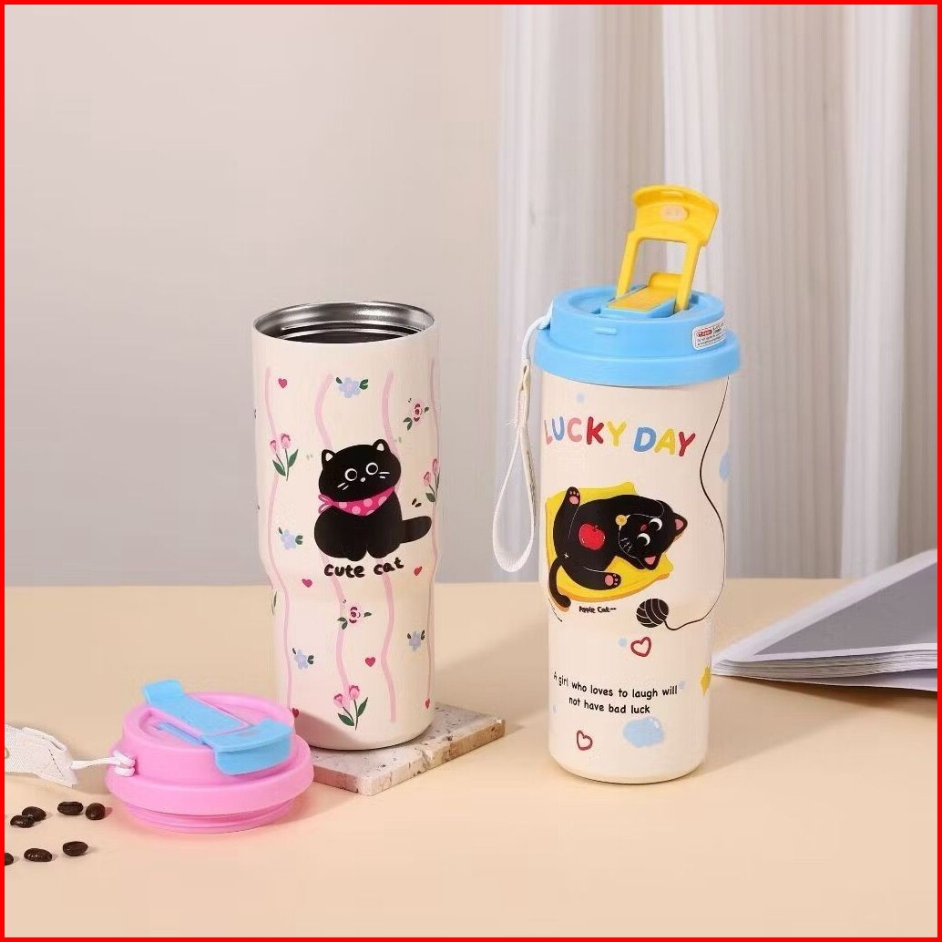 Botol Tumbler Termos Coffee 800ml Karakter Kucing Lucu Stainless Sus 316 Tahan Panas Dingin Bpa Free