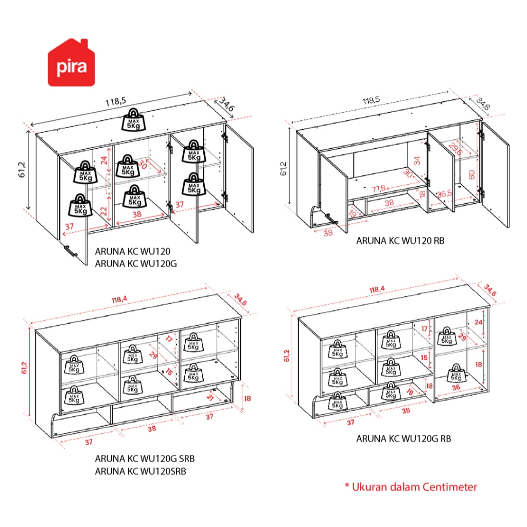 Rak Dapur Pira Metropolis Ox Aruna Kc Wu120 Kitchen Set Atas 3 Pintu