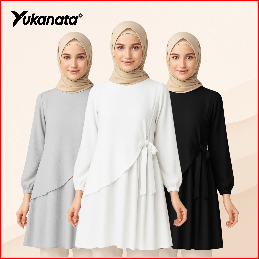 Yukanata.id - Tunik Qinara Elegan Ruffle Putih Anggun Modern Simple Stylish Fashion Muslimah Kekinian Matterial Crinkle