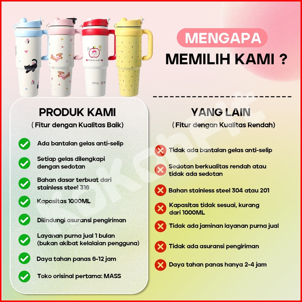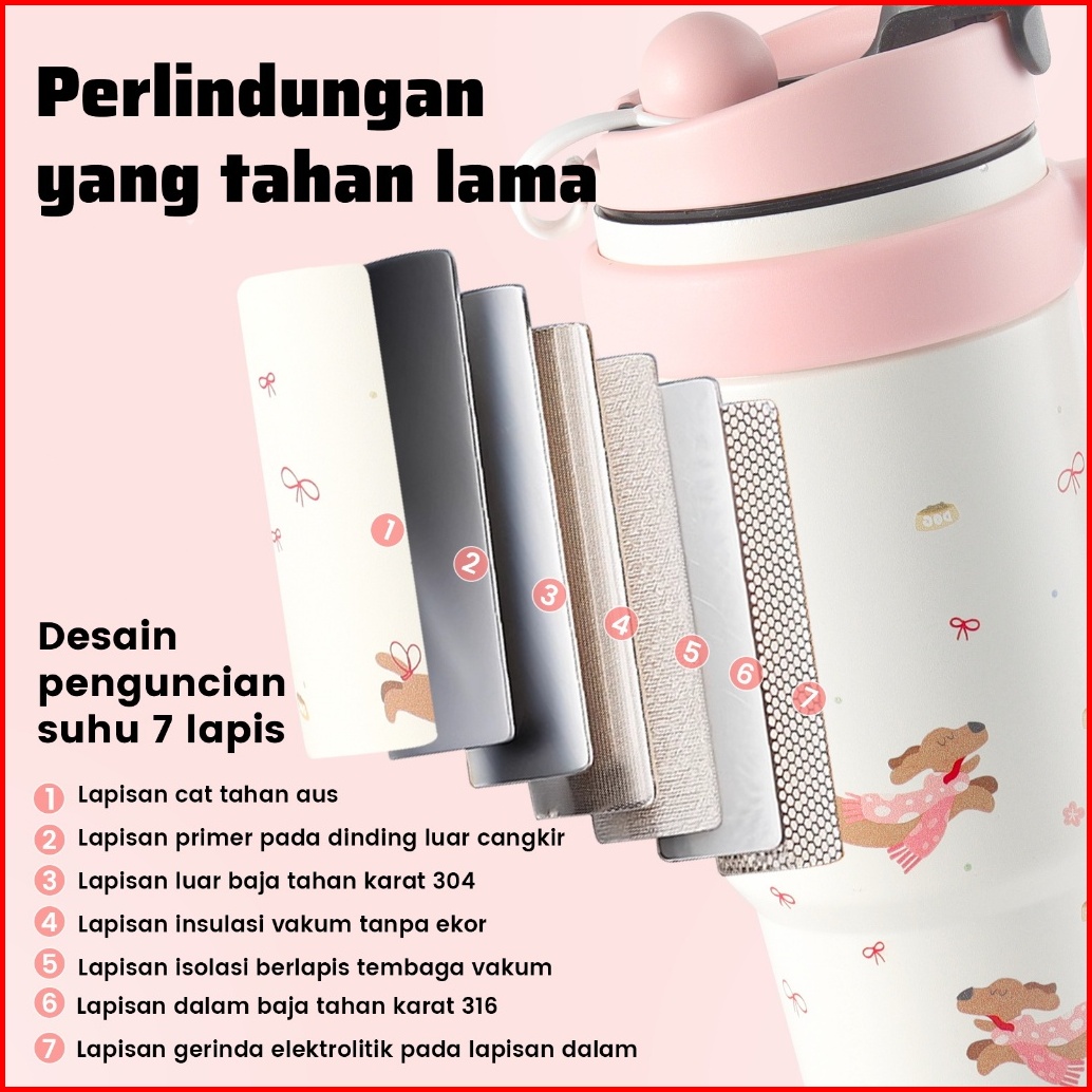 Tumbler Stainless Vacuum 1000ml Portable Thermos Botol Minum Besar Aesthetic Anak Laki Laki