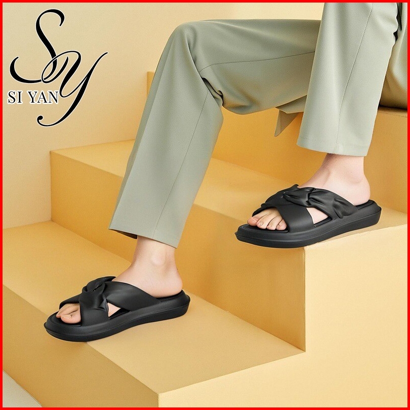 Si Yan 2025 Sandal Wanita Eva Jelly Selop Kekinian Sandal Flat Empuk Elastis Pria Slide Kasual