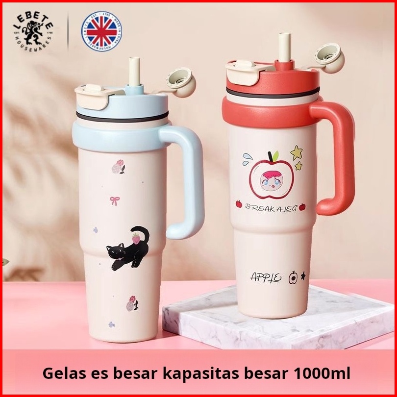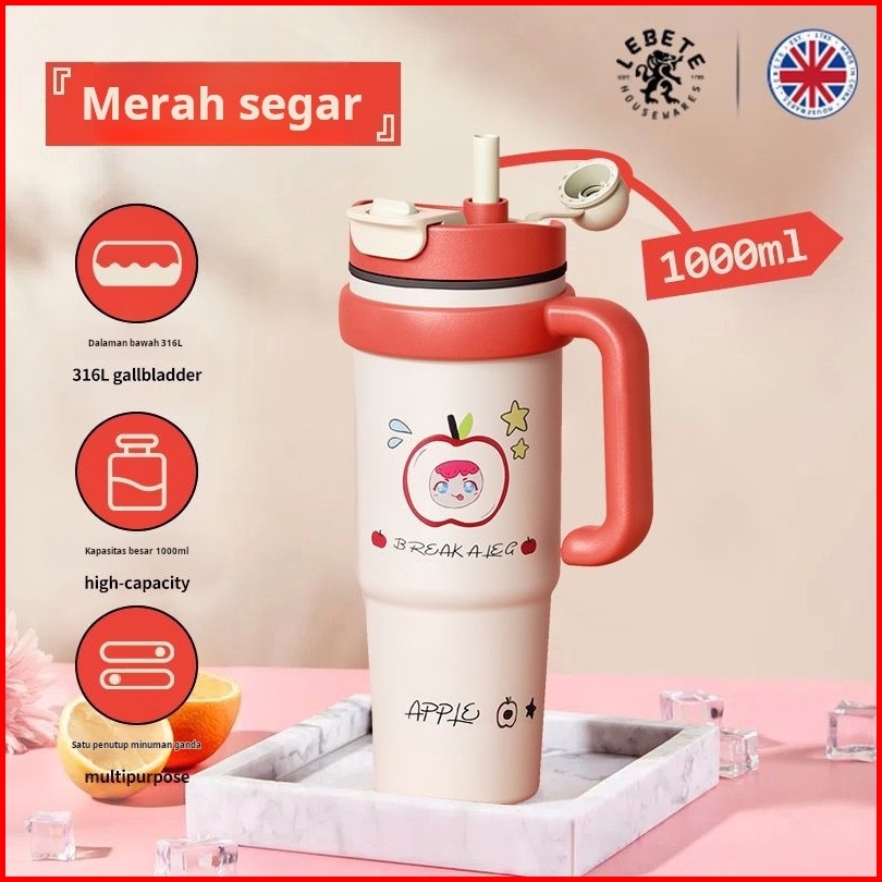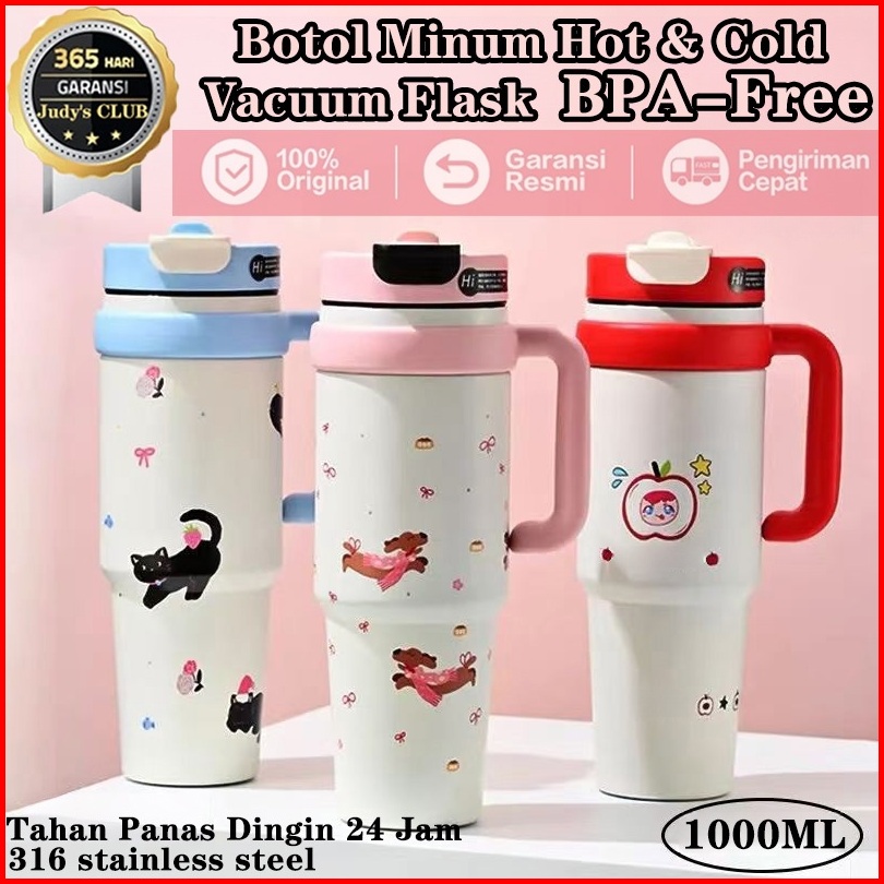 1000ml Tumbler 316 Stainless Vacuum Portable Botol Minum Besar Tahan Panas Dingin 24 Jam Thermos Cerat Minum Ganda