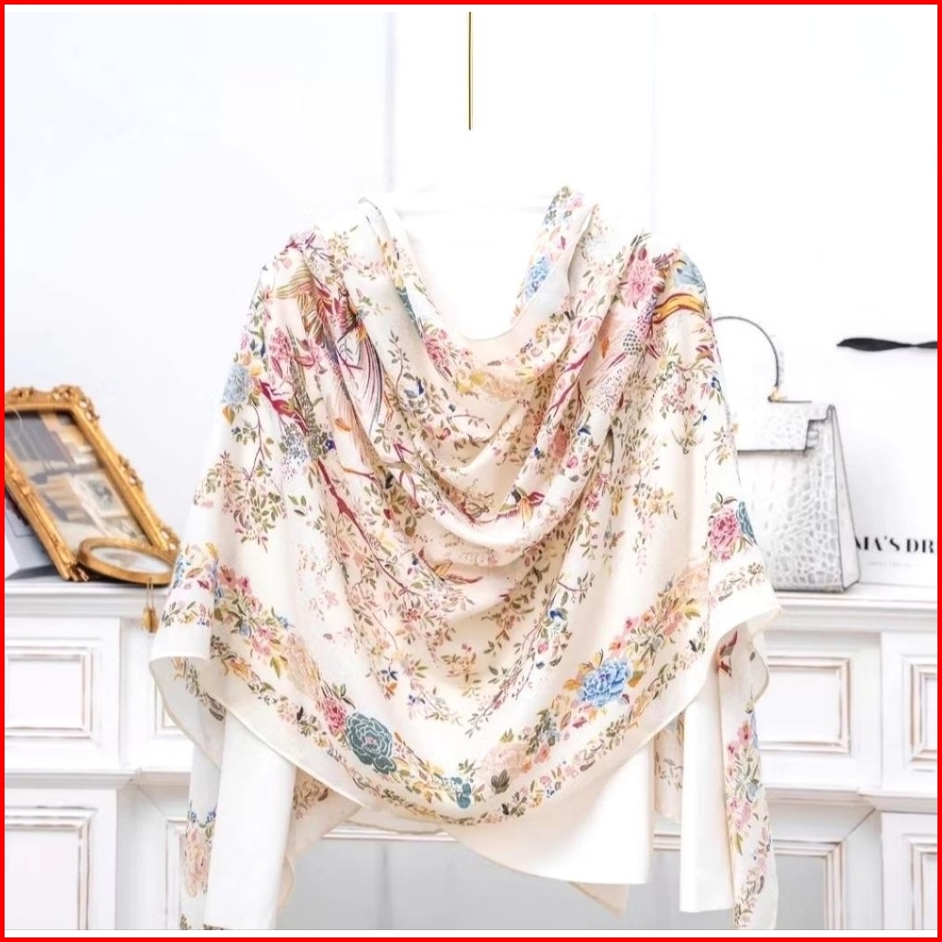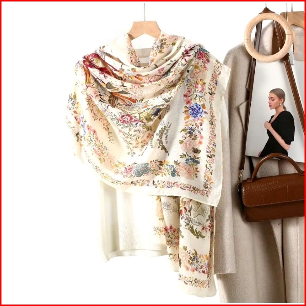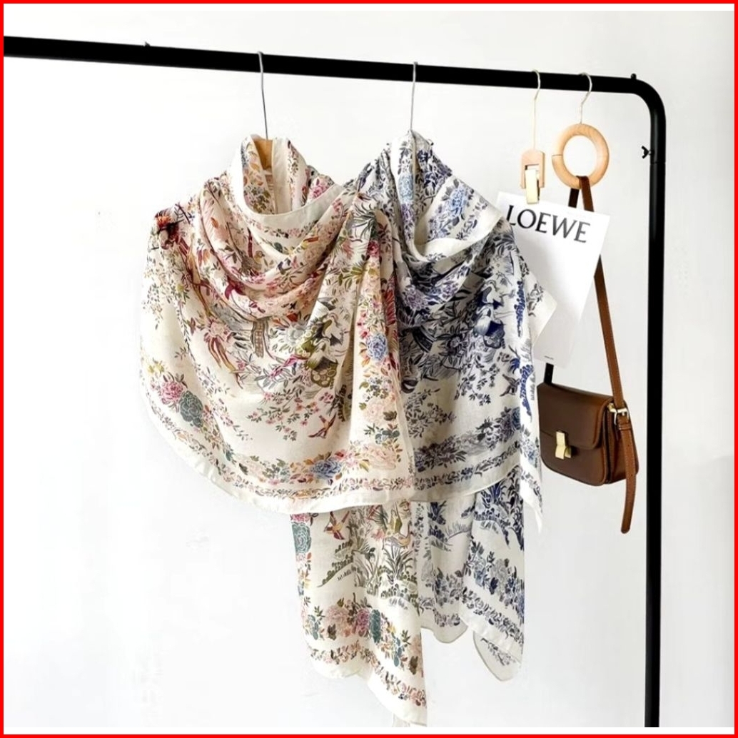 Pashmina Hijab Kerudung Motif Printed Viscose Cotton - Cantik Multicolour Blue Biru