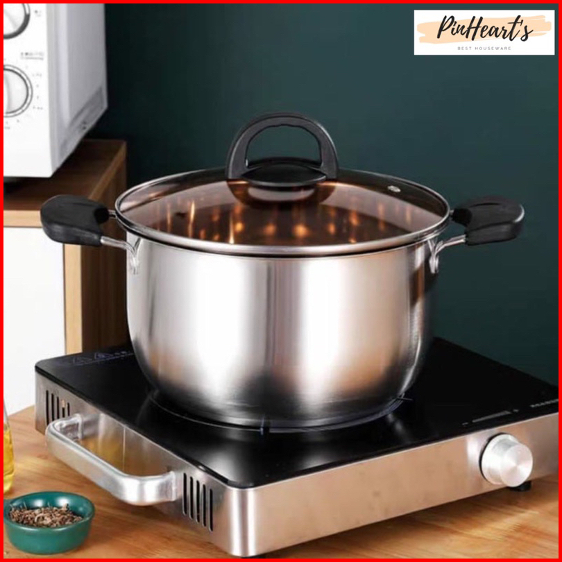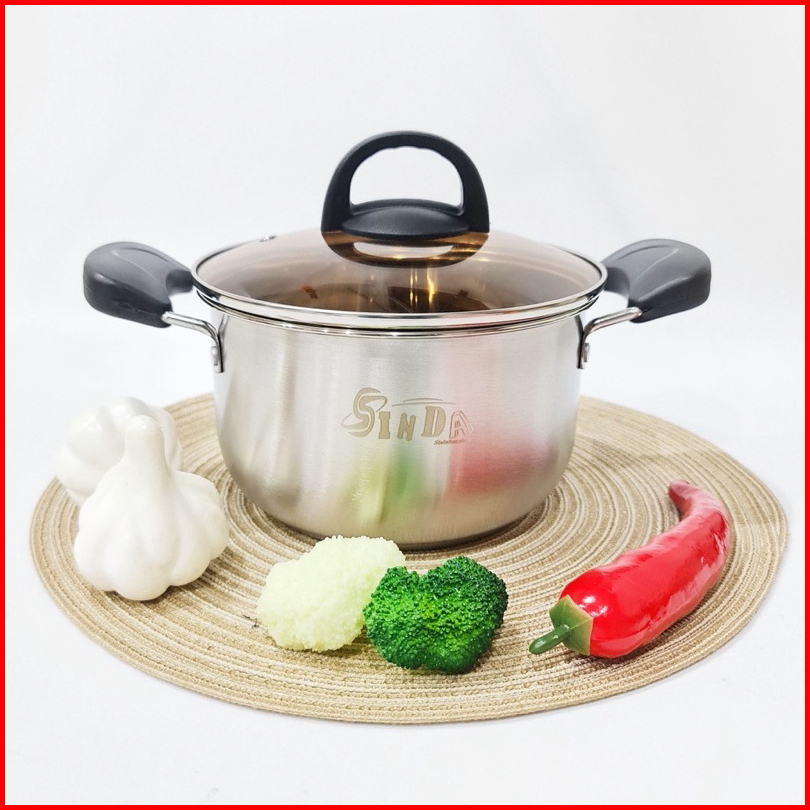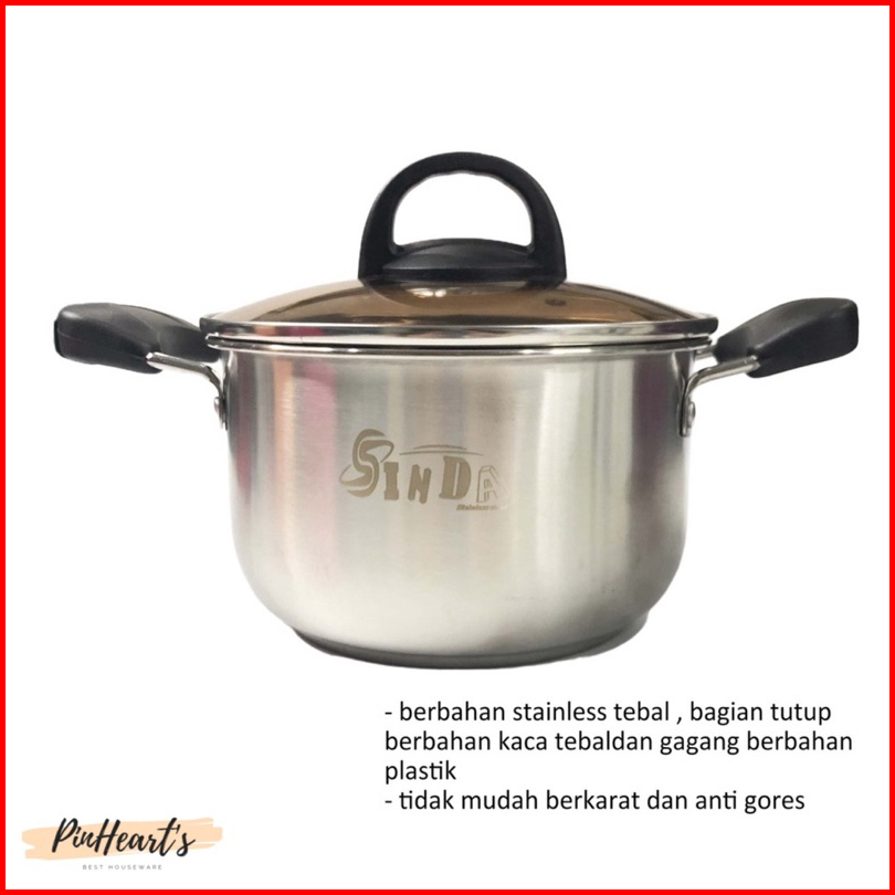 Panci Kuping Panci Sup Soup Pot Sinda Stainless Steel Tutup Kaca Ukuran 20cm 22cm 24cm 26cm Tebal