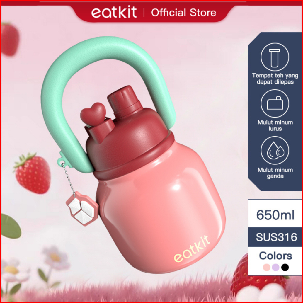 Eatkit Vacuum Thermos Stainless Steel 650ml Botol Minum Tahan Panas Tumbler Handle Linlin Tritan
